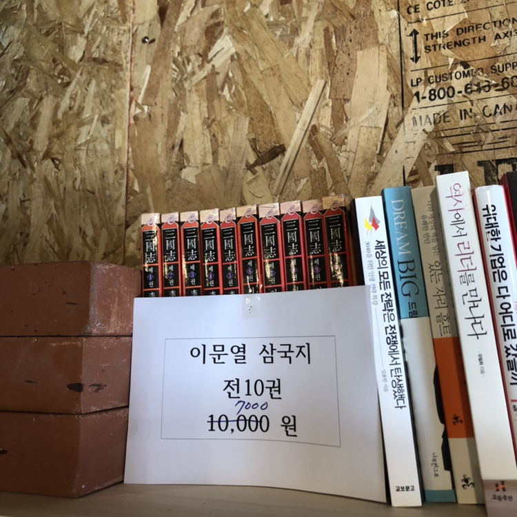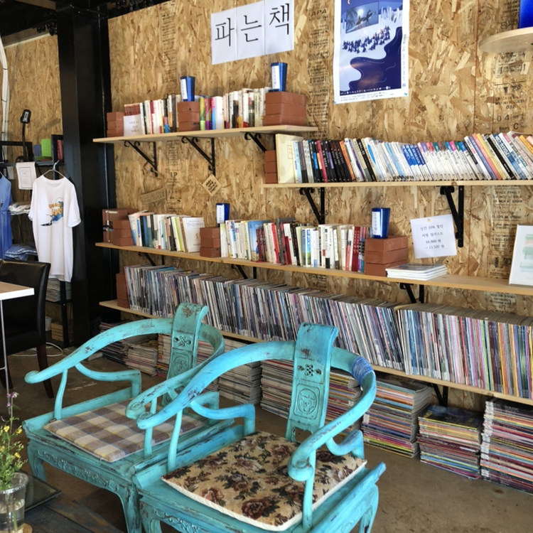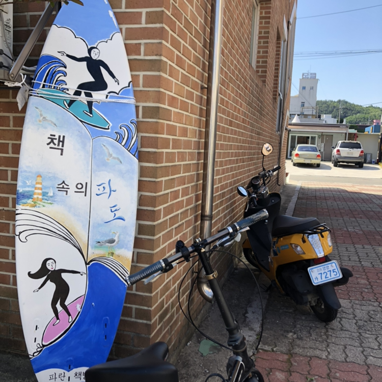 다음날 아침 일곱 시쯤 산책을 하다가 어제 못 갔던 서점 겸 카페 '파란 책방'에 갔더니 문이 닫혀 있었다. 낮에 다시 갔다. 현승이 형이 책방 앞 벤치에 앉아 고객인지 친구인지 어떤 분과 대화를 나누고 있었다. 아내와 나는 안으로 들어가 책들을 구경했다. 오른쪽 책꽂이엔 파는 책들이, 왼쪽엔 읽을 책들이 꽂혀 있었다. 이문열 삼국지 열 권 한 질이 만 원이었는데 7,000원으로 할인 표시가 되어 있었다. 터무니없이 싼 가격에 웃음이 터져 나왔다. 우리는 서핑을 그림으로 해설하는 번역서를 한 권 사서 나왔다. 책값은 가게 안에 있는 돈통에 넣고 나왔다. 이 곳은 무인 서점이라 책값도 음료값도 현금으로 내고 가야 한다.