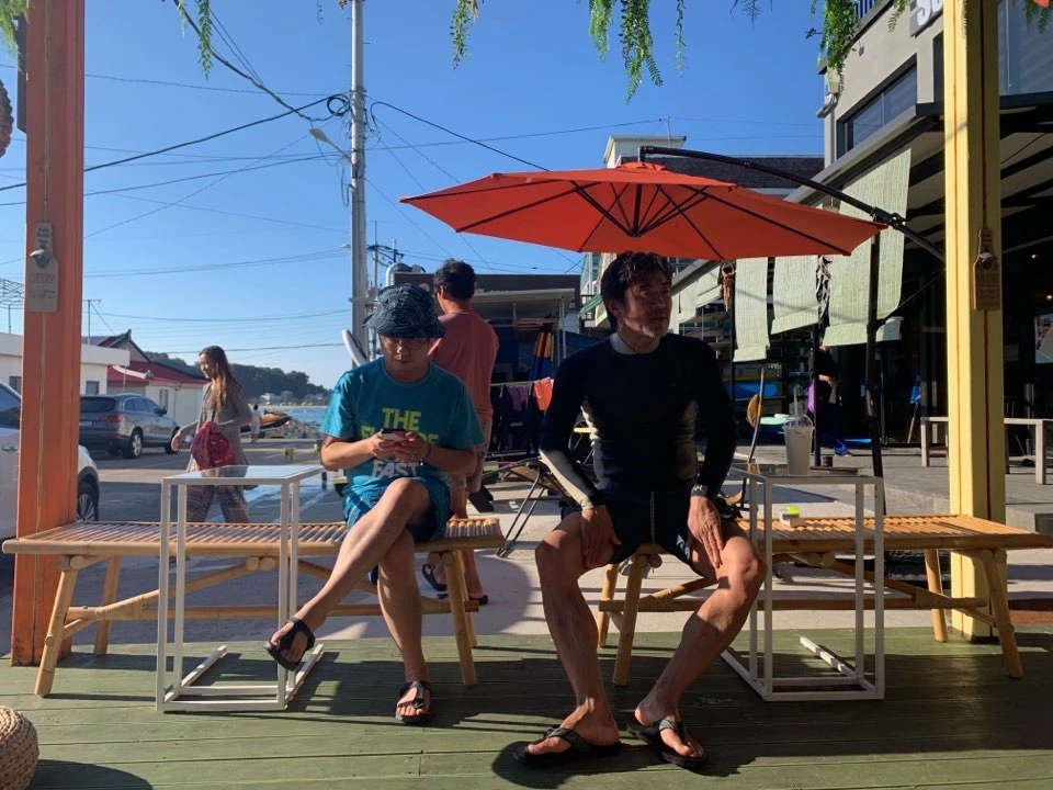 서울로 돌아오기 직전에 서퍼들이 오는 카페에서 노닥거리다가 마침 서핑을 마치고 물을 뚝뚝 흘리며 걸어오고 있는 현승이 형을 만나 인사를 했다. 오광록 씨도 날씬한 몸으로 서핑 슈트를 반쯤 벗고 머리의 물을 털고 있었다. 우리는 그 옛날 반바지에 정장이나 자동응답기 얘기를 하며 함께 웃었다. 현승이 형은 스노보드나 다른 비슷한 스포츠에 비해 서핑은 파도가 늘 달라서 그 느낌이 더 각별하다고 말했다. 그리고 서핑을 하면 지구가 움직이고 있다는 것을 몸으로 느낄 수가 있다고도 했다.