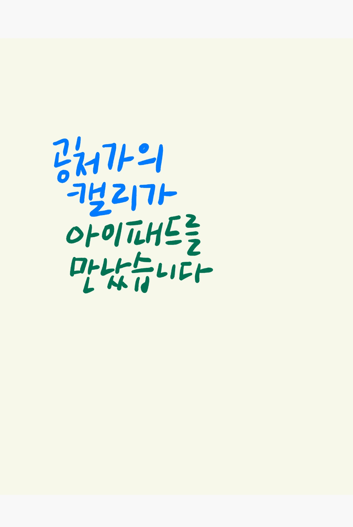 집에 와서 아이패드 에어 위에 글씨를 써봤습니다. 아직 글씨가 썩 마음에 들진 않지만 그래도 새로운 세계더군요. 이제 공처가의 캘리는 물론 인스타그램의 히든북스(@hidden__books) 계정, 나아가 글쓰기 강연 PPT에도 제 글씨를 활용할 수 있을 것 같습니다. 저는 이걸 하고 싶어서 아이패드 에어를 샀지만 다른 데에도 활용해야 하겠죠. 이 글을 읽는 분 중에 '아니, 아이패드를 사서 기껏 저런 데만 쓴단 말야?'라고 생각하시는 분도 계실 겁니다. 당신의 아이패드 활용법을 알려 주십시오. 아내는 저보다 디지털 기기를 잘 다루지만 제가 물어보면 잘 안 가르쳐 주거든요.