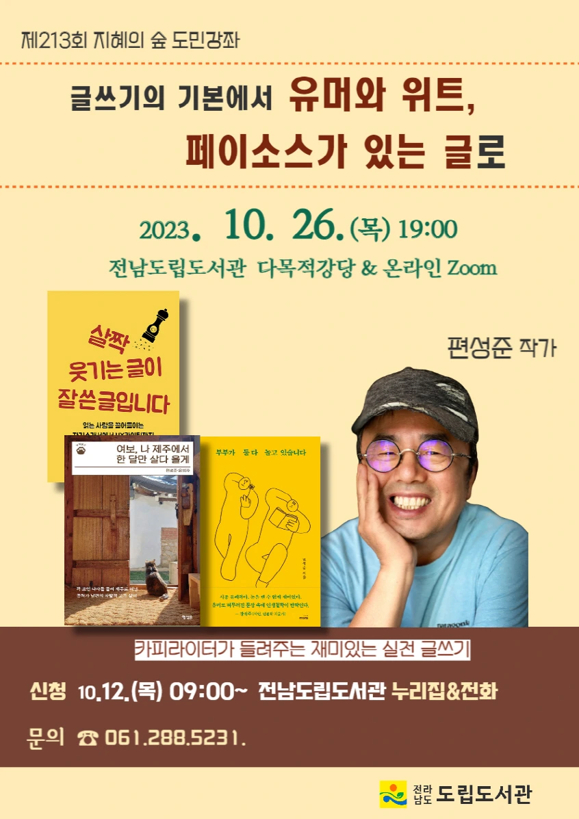 글쓰기 강연을 하는 건 힘들지만 즐겁습니다. 저는 이게 뒤늦게 제게 찾아온 행운이라 생각합니다. 그러니 더욱 열심히 즐겁게 해야죠. 내일은 전남도립도서관에 가서 <글쓰기의 기본에서 유머와 위트, 페이소스가 있는 글로>라는 주제로 특강을 합니다. 10년 넘게 이어온 도민강좌인데 이번에 설문조사를 해보니 글쓰기 강연을 원하는 사람이 많아서 저를 지목했다고 합니다. 그리고 토요일엔 김신영 시인 초청으로 이천에 가서 문학 강연도 합니다. 이 날은 김민섭 작가님도 오신다니까 저도 책을 가져가 저자 사인을 받을까 합니다. 참, 글쓰기에 관해 쓴 저의 책 『살짝 웃기는 글이 잘 쓴 글입니다』가 2쇄를 찍게 되었다는 소식이 어제 왔습니다. 그동안 1쇄에 있는 오자들 때문에 마음이 매우 찜찜했는데 싹 다 고칠 수 있게 되어 너무 기쁩니다.