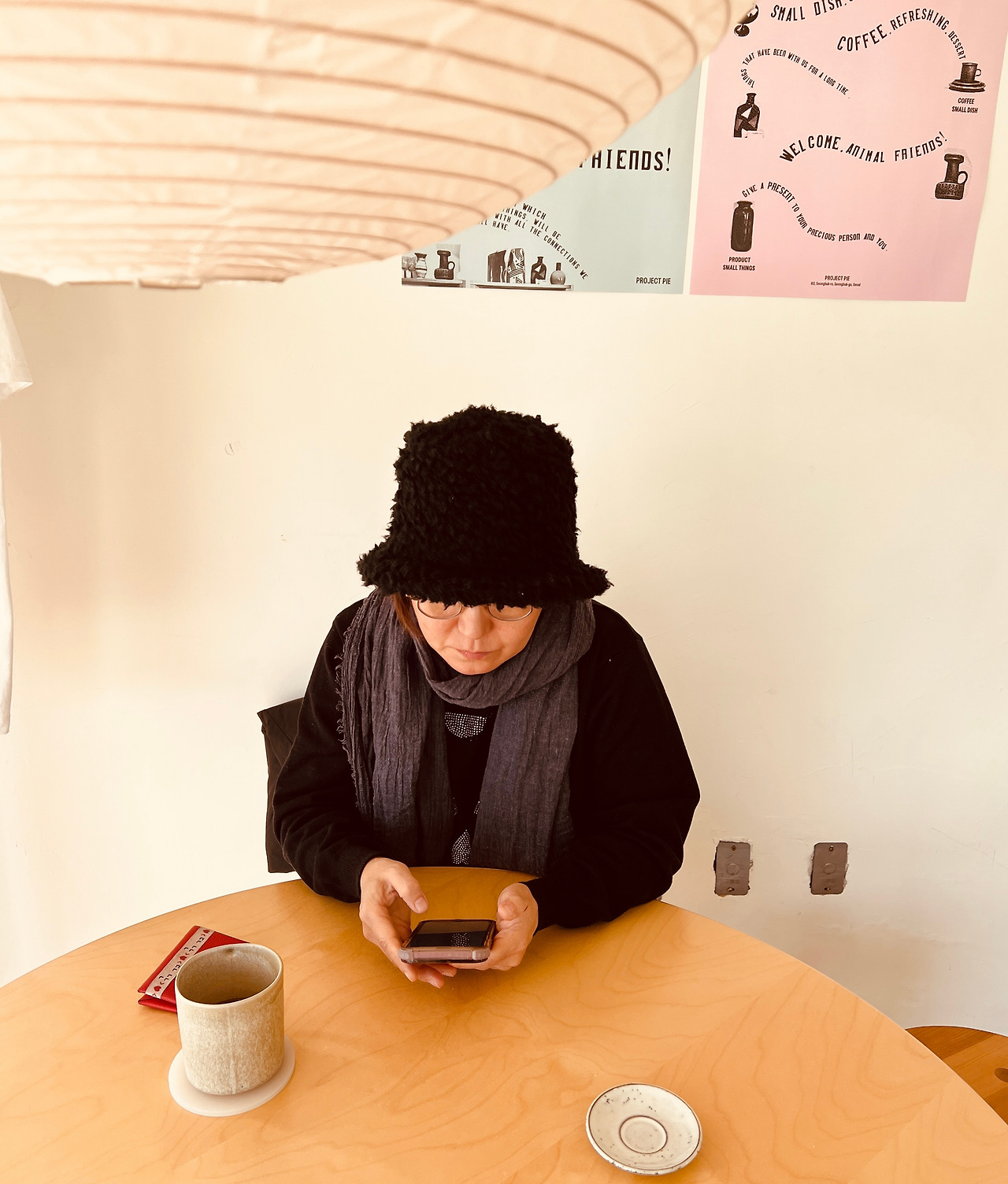 프로젝트 파이에 가서 아무 일도 없었던 것처럼 커피를 마시고 아내 사진을 몰래 찍었다. 이런 지저분한 이야기 끝에 아내 사진이 올라오면 그녀는 화를 낼지 모르지만, 에라, 모르겠다. 일단 올리자. 이럴 땐 '나는 아내를 디스하는 게 아니라 프로젝트 파이를 소개하는 뜻에서 올리는 건데 뭐'라고 자신을 잠깐 속이면 된다.