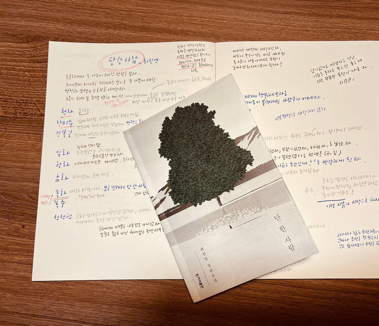 12월 31일과 1월 1일을 함께 한 소설은 제주의 책방 소리소문에 갔을 때 산 최진영의 <단 한 사람>이었습니다. 이 소설은 사람들의 죽음을 보게 되고 그중에 단 한 사람만 살릴 수 있는 능력을 갖게 된 사람들의 이야기입니다. 재밌는 건 그들에게 이런 주문을 하는 존재가 나무라는 사실이죠. 작가는 어떤 신적인 존재를 생각하다가 나무를 떠올렸을 겁니다. 아주 오래 살고(지구에는 9천 년을 산 나무도 있다고 합니다) 한 곳에 서서 인간들을 지켜보는 나무 같은 생물이라면 인간에게 그런 명령을 내릴 수도 있다고 상상해 보았겠죠.