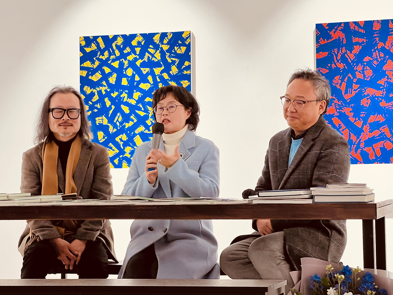 화가의 전시회와 출간기념회가 함께 열린 이유는 생전에 김춘수 시인이 나이가 훨씬 어린 최용대 화백에게 직접 연락을 해서 '내 시와 당신의 그림이 들어간 책을 만들어 보자'라고 청하셨기 때문이었습니다. 거기에 김성신 평론가가 관여해 발간을 추진했고요. 책을 내기 전 최용대 화백의 집으로 김춘수 시인의 많은 책이 도착했답니다. 당신의 그림은 단순히 삽화로 들어가는 게 아니니 내 시를 완전히 이해했으면 좋겠다, 라는 시인의 배려였죠. 최 화백은 '좋은 시집을 베고 누워 자면 자음과 모음이 해체되어 다시 내게 좋은 영감으로 돌아오지 않을까'라는 나이브한 생각을 하며 그 시집들을 베고 자기도 했다는군요. 예술가는 생각하는 것 자체가 다르구나, 하고 감탄했습니다.