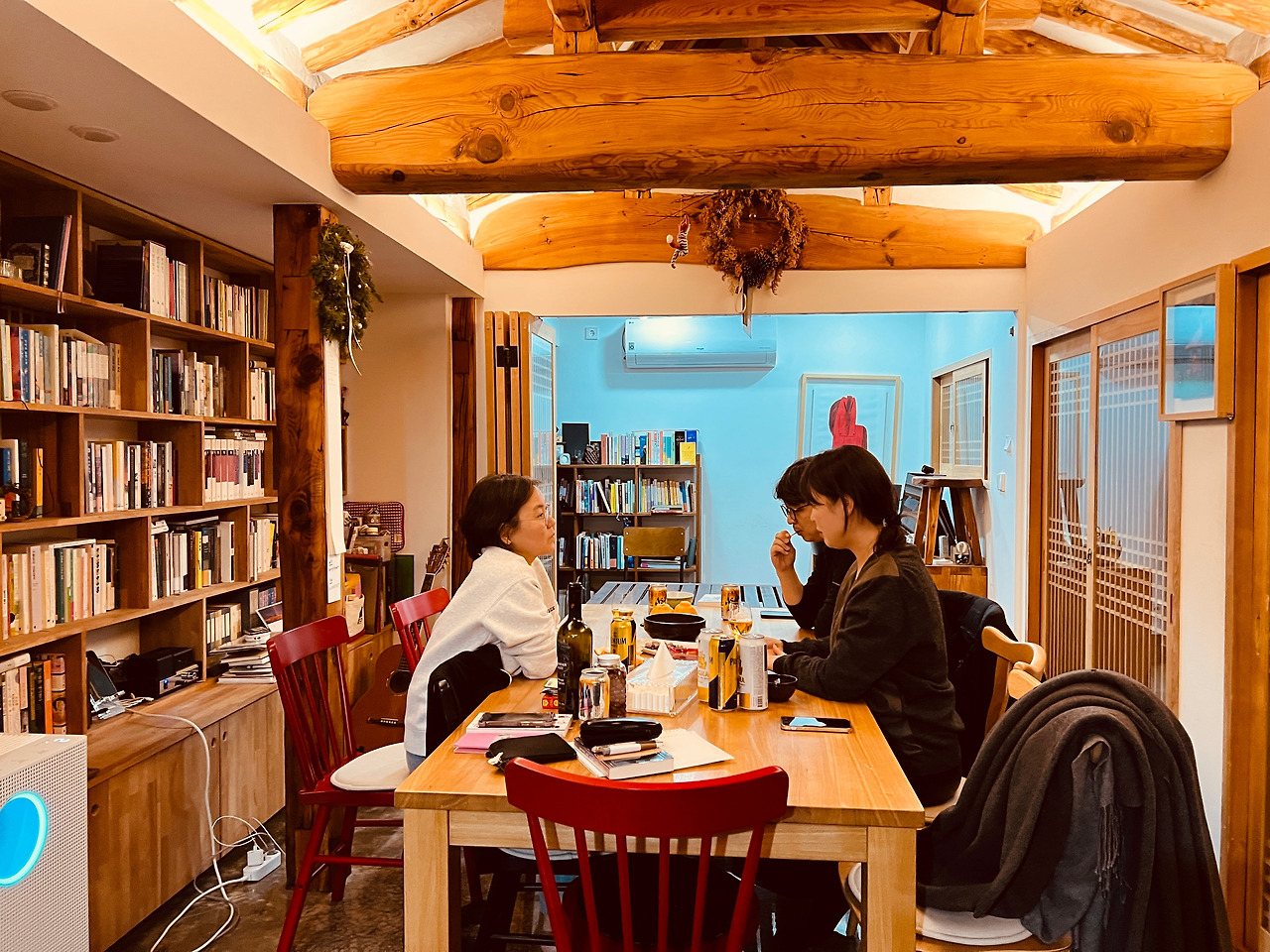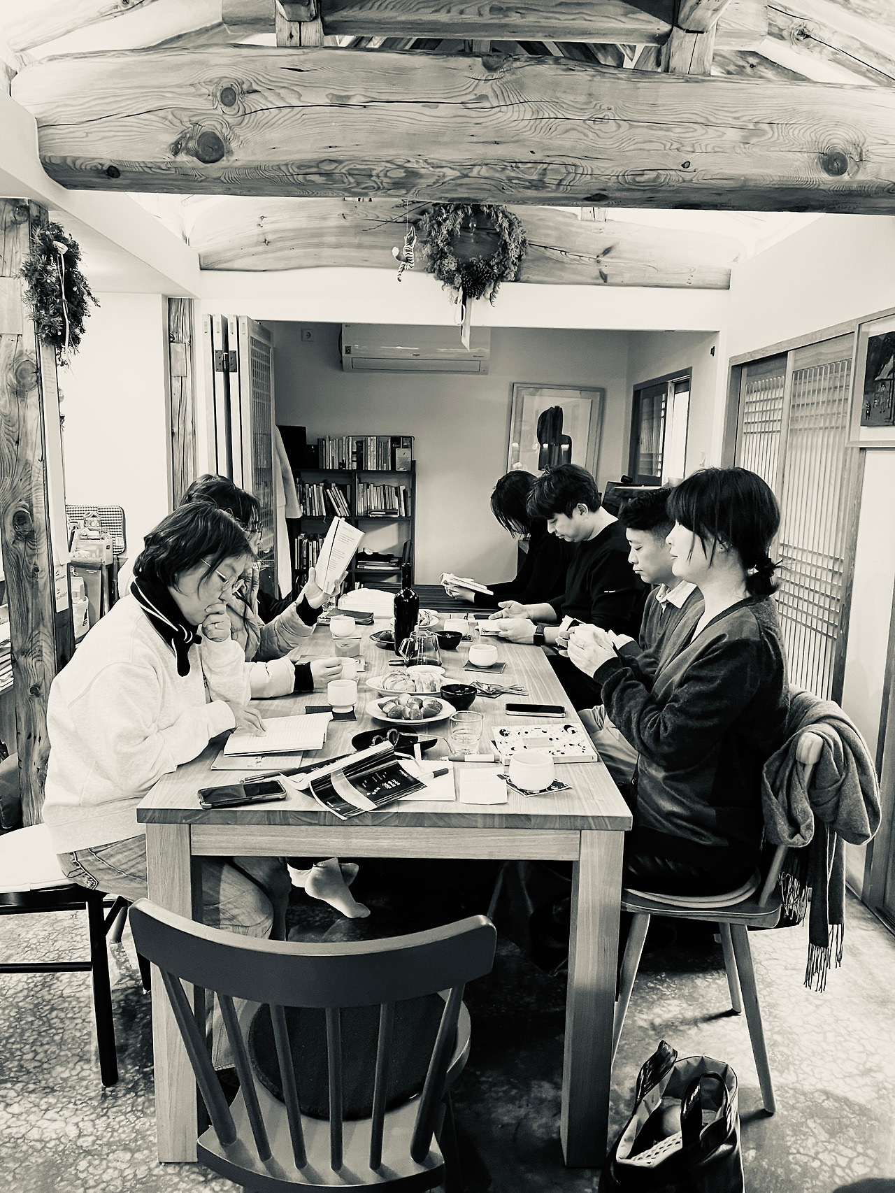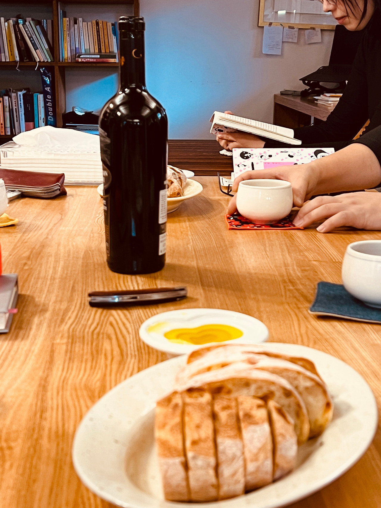 이번 시즌부터는 다시 오후 2시에 모여 한 시간 묵독을 하고 3시부터 책에 대한 이야기를 하는 나누기로 했습니다. 윤혜자 씨가 간식을 내놓았는데 빵과 올리브유(올리브유는 베제카!)가 너무 맛있어 탈이었고 심지어 박재희 씨가 와인을 한 병 가져오시는 바람에 방해를 받기에 충분했지만 우리는 의연하게 묵독에 임했습니다. 책이 재밌었습니다.