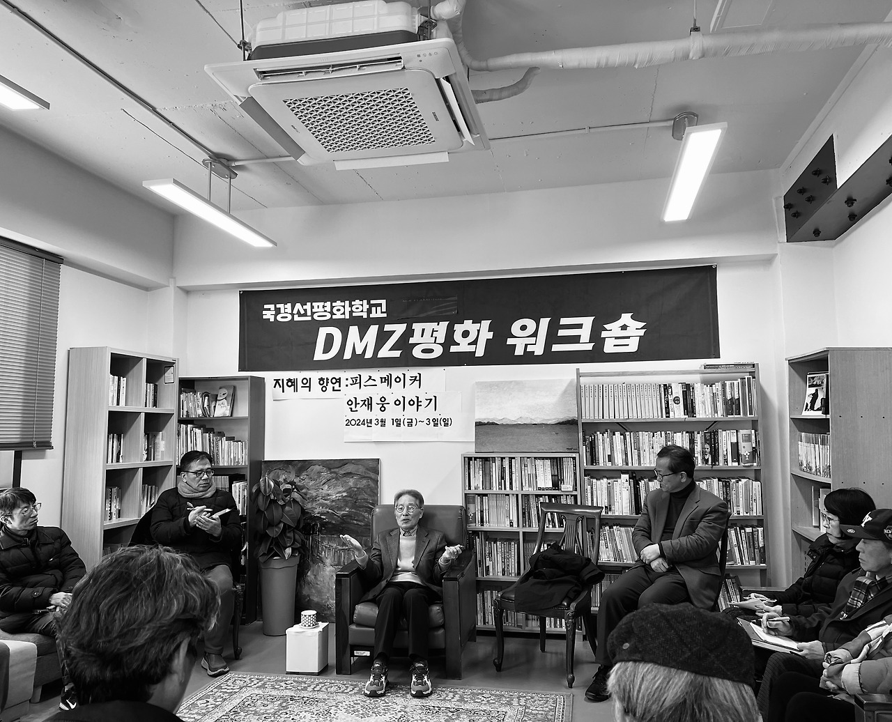 마침 우리가 간 어제는 3.1절이었고 '2024 [DMZ평화특강]'이 열리는 첫째 날이기도 했다. 오후 2시 우리가 도착했을 때는 이미 개교 11주년 기념 모임이 시작되었고(자기소개 시간이길래 "안녕하세요? 편성준이라고 합니다. 저는 기독교인은 아니고요, 책을 기증하러 왔는데 이렇게 거룩한 분위기인 줄은 몰랐습니다."라고 인사를 했다) 3시부터 '피스메이커' 안재웅 박사의 강연이 시작되었는데, 나는 그만 깜짝 놀라고 말았다. 1940년생, 우리 나이로 85세인 안 선생은 구한말부터 지금까지의 우리나라 기독교 역사를 자신의 집안 이야기와 섞어서 들려주었는데 그 팔팔한 기백과 옳은 방향성, 그리고 무엇보다 기억력의 비상함이 놀라웠다. 사람들 이름도 이상재, 윤치호, 전태일, 조영래, 안병욱, 언더우드, 심대균, 이창복(독일 여성 작가 이름을 까먹었다. 무슨 슈타인이었는데) 등 동서양을 가리지 않고 나왔고 한국 YMCA 학생회부터 87 항쟁에 이르기까지 그 모든 이야기에 '민주화'가 붙어 있어서 신선하고도 젊었다. 우리나라의 기독교가 그동안 민주주의를 이루는 과정에서 이렇게 많은 일을 했구나, 하고 새삼 깨닫는 기회였고 특히 전태일 열사가 분신했을 때 병원으로 달려갔던 사람들이 "우리는 기독자로서 이 사람의 죽음을 기억해야 한다. 이 사람은 현대의 예수와 같다."라고 해석하며 197년부터 1980년까지 한 해도 거르지 않고 기념식을 했던 대목은 시대정신을 읽는 지식인들의 실천적 면모를 확인하는 장면이었다.