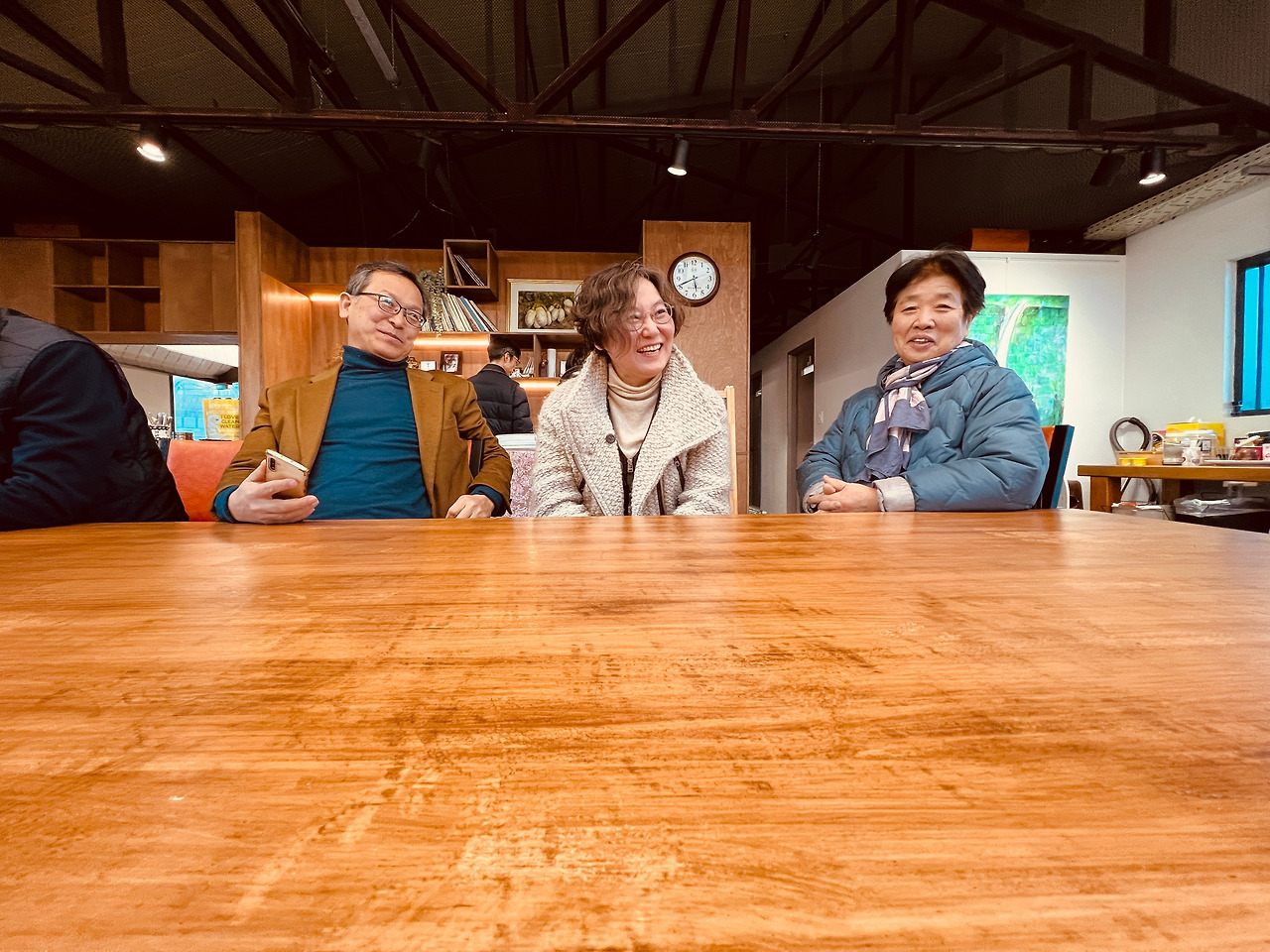 1부가 끝나고 식사를 하는 시간에 누가 정지석·전옥희 선생을 어떻게 아느냐고 묻자 아내가 "그냥 페이스북 친구"라며 웃었다. 아마 대답을 하면서도 '페이스북 친구가 뭐라고 철원까지 달려 왔을까' 라는 생각을 했을 것이다. 하지만 덕분에 너무나 많은 것을 얻어가는 자리였다. 철원에서 십수 년째 농사를 짓고 있다는 1기 졸업생 김융희 선생과도 인사를 나누었고 요즘 우리가 먹는 치아바타를 만드는 평화농장의 부부 대표님들도 만났는데 여성 대표님이 아내가 윤혜자라는 걸 알고 깜짝 놀라며(이니 그 윤혜자 선생이 이 윤혜자 선생이었어요?!) 반가워해 주셨다. 정지석 선생이 우리에게 "저녁 7시 2부 강연 전 사람들에게 '누구나 책을 쓸 수 있고 또 써야 한다는 얘기를 해달라"라고 우리에게 요청하셨다. 나는 내가 광고회사를 다니다 그만둘 때의 심정과 에피소드를 시작으로 제주에 혼자 내려가 외롭게 첫 책의 원고를 쓰던 이야기, 요즘 글쓰기 강연과 책 쓰기 워크숍을 하며 사는 이야기, 책을 쓰면 달라지는 인생 전반에 대해 말씀드렸고, 이어 아내 윤혜자는 책 쓰기에 필요한 마음가짐과 자세, 목표를 이루기 위한 팁 등을 쉽고 빠르게 전했다. 렌터카 반납 시간인 밤 열 시에 맞추어 일어나야 했기에 둘 다 말이 빨랐고 중구난방이었다. 그래도 좋았다. 다음엔 더 여유 있게 와서 더 많은 이야기를 들려 드리기로 약속했다.
