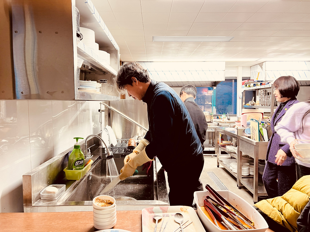 더욱 놀라운 것은 강연 분위기였다. 도서관엔 뛰어노는 아이가 둘 있어서 강연에 방해가 되기도 했는데 그 누구도 조용히 하라 하거나 얼굴을 찌푸리지 않았다. 민주와 배려가 생활인 사람들인 것 같았다. 이야기 마당 시작 전에 이 학교의 교장선생님인 정지석 선생이 나와 '지혜의 향연'은 사랑방처럼 편안하게 진행된다고 설명을 해주셨는데 역시 그 말 그대로였다. 강연 도중 질문과 의견이 있었고 끝나고 나서도 많은 이야기가 있었는데 어떤 장로님이 "<길 위에 김대중>이라는 다큐에도 '호헌철폐 운동본부' 등 기독교인들의 활약했던 일들이 생략되어 있는 점, 더 나아가 지금은 기독교에서 그런 논점 자체가 활성화되지 않는 점, 그래서 결국 젊은이들은 기독교, 라고 하면 전광훈 목사만 떠올리는 현실을 개탄했다. 정지석 선생이 학교의 취지 등을 얘기하며 "우리나라는 매년 분단 비용이 60조 원"이라고 한 얘기도 기억할 만한 언급이었다.