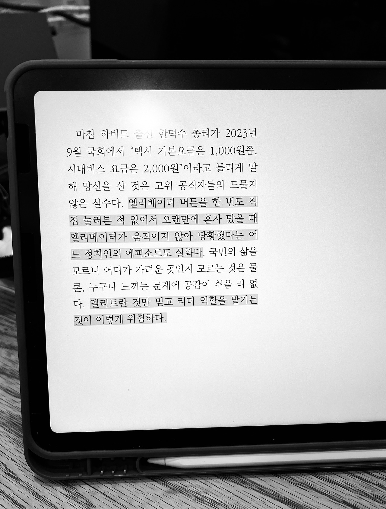 '부작위'라는 말이 있다. 마땅히 해야 하는 것으로 기대되는 행위를 하지 않는 것을 뜻한다. 사고가 날 위험이 있으면 미리 신경을 써서 예방책을 만들어야 하고 그대로 실행해야 한다. 대통령을 비롯한 국가수반들은 그러라고 뽑아 놓은 것이다. 그런데 사고 후 그들이 한 일이라고는 참사를 '사고'로 바꾸고 희생자를 '사망자'라는 단어로 교체하는 것이었다. '근조'라는 글자가 보이지 않는 검은 리본을 매라고 지시하는 일이었다. 왜 이런 정신 상태가 되었을까. 정혜승은 엘리베이터를 혼자 탔다가 어느 버튼을 눌러야 할지 몰라 당황했던(항상 누가 대신 눌러 주었으니까) 한 정치인의 에피소드를 예로 들며 높은 자리에 있는 사람들이 얼마나 공감능력이 떨어지는가, 로 확장한다. 그의 관찰에 의하면 마블 히어로 스파이더맨도 알고 있는 '큰 힘에는 큰 책임이 따른다'는 명제는 우리나라 정치인과 위정자들에겐 딴 나라 얘기다.