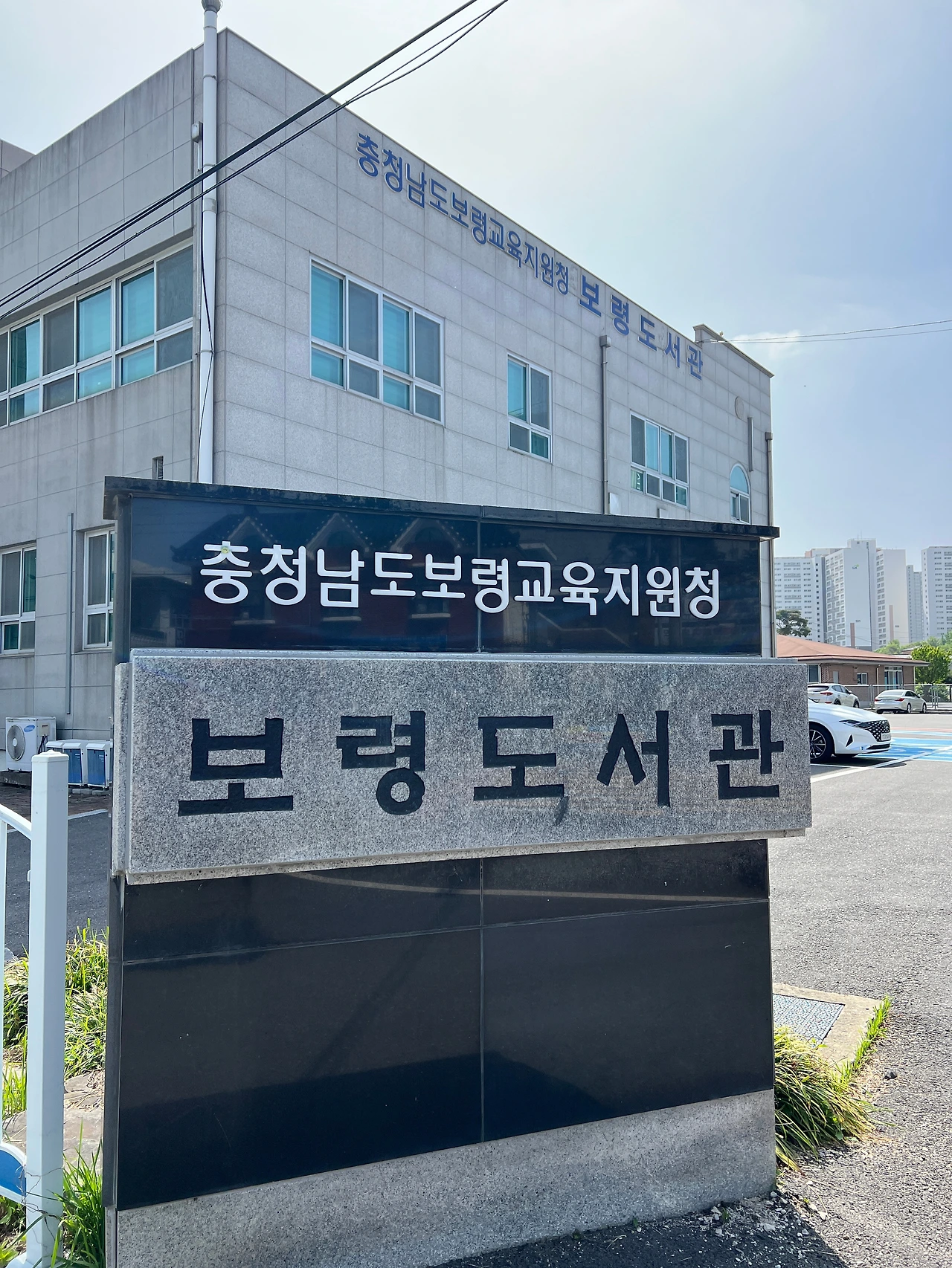 우리가 묵는 숙소에서 가장 가까이 있는 도서관은 ‘보령도서관’이었다. 지난번엔 보령에 도착해서는 정작 보령 아닌 홍성에 있는 충남도서관부터 갔었으므로 이제 ‘보령 한 달 살기’ 프로젝트의 일환으로 시작하기에는 아주 적당한 이름의 도서관이었다. 아내와 나는 보령 친구들과 점심을 먹기 전 잠깐 도서관에 들르기로 하고 길을 나섰다. 대천중학교와 한내초등학교 근처였다. 도서관 가는 길에 ‘수청사거리’라는 도로표지판이 등장하자 아내가 변사또 같은 목소리로 “수정을 들라!”라고 작게 외쳐서 잠깐 웃었다.