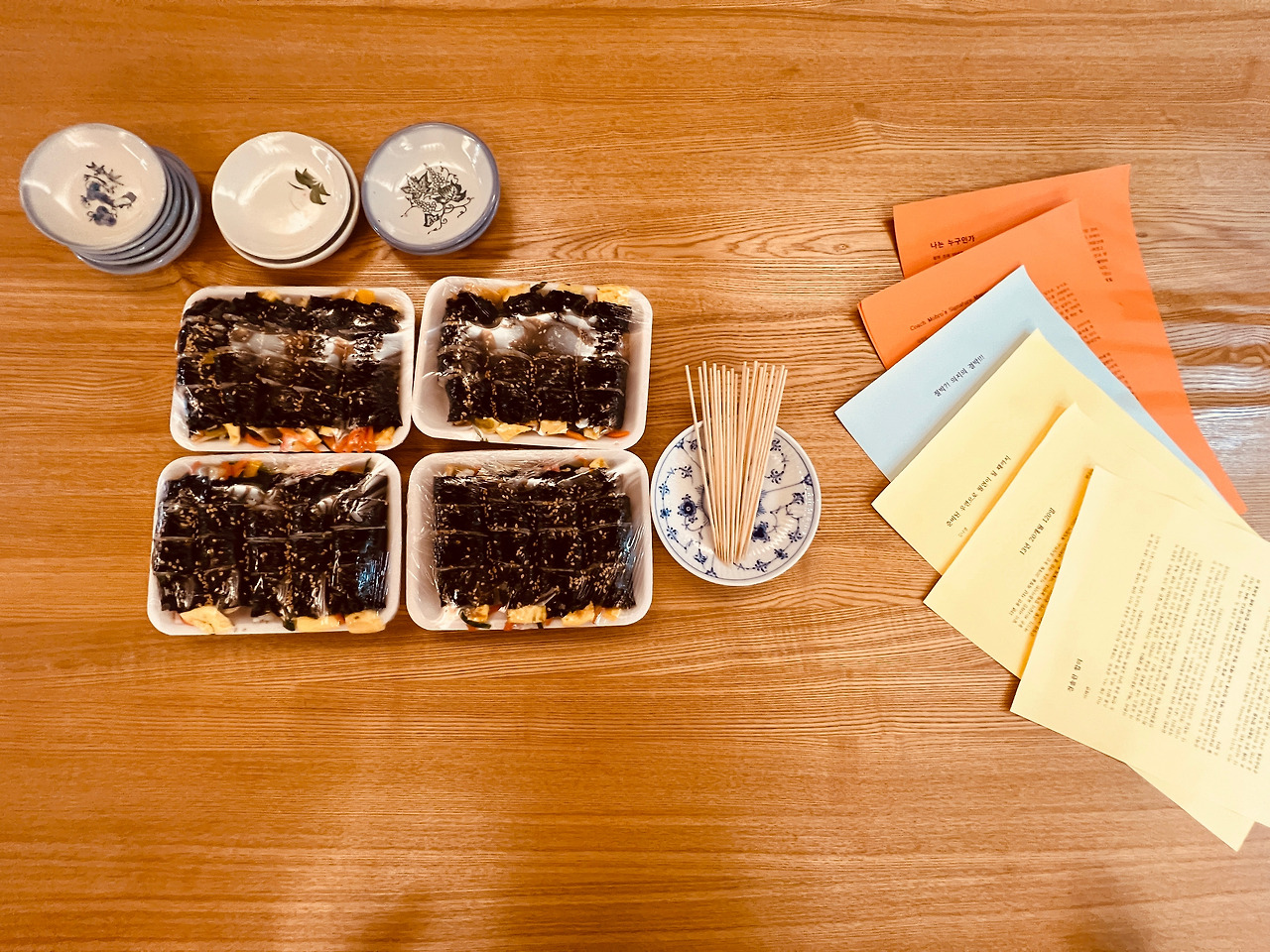 어제는 줌으로 진행하던 5주짜리 글쓰기 수업 《자기 계발을 위한 글쓰기 특강》 마지막 시간이었습니다. 온라인으로만 만나는 게 싫어서 마지막 시간은 저희 집으로 수강생들을 모시곤 했는데 어제도 그런 경우였습니다. 이제 7월이면 저희는 몇 년 간 이 집을 떠나 보령으로 가니 어쩌면 이게 마지막 기회일 수도 있겠군요. 암튼 어제는 아내가 보령에 가 있어서 저 혼자 간식으로 꼬마김밥과 음료수 등을 준비했습니다. 저녁 7시 넘어 시장한 상태에서 강연을 들으면 앞에 있는 강연자가 말 많은 것만으로도 화가 날 수 있으니까요.