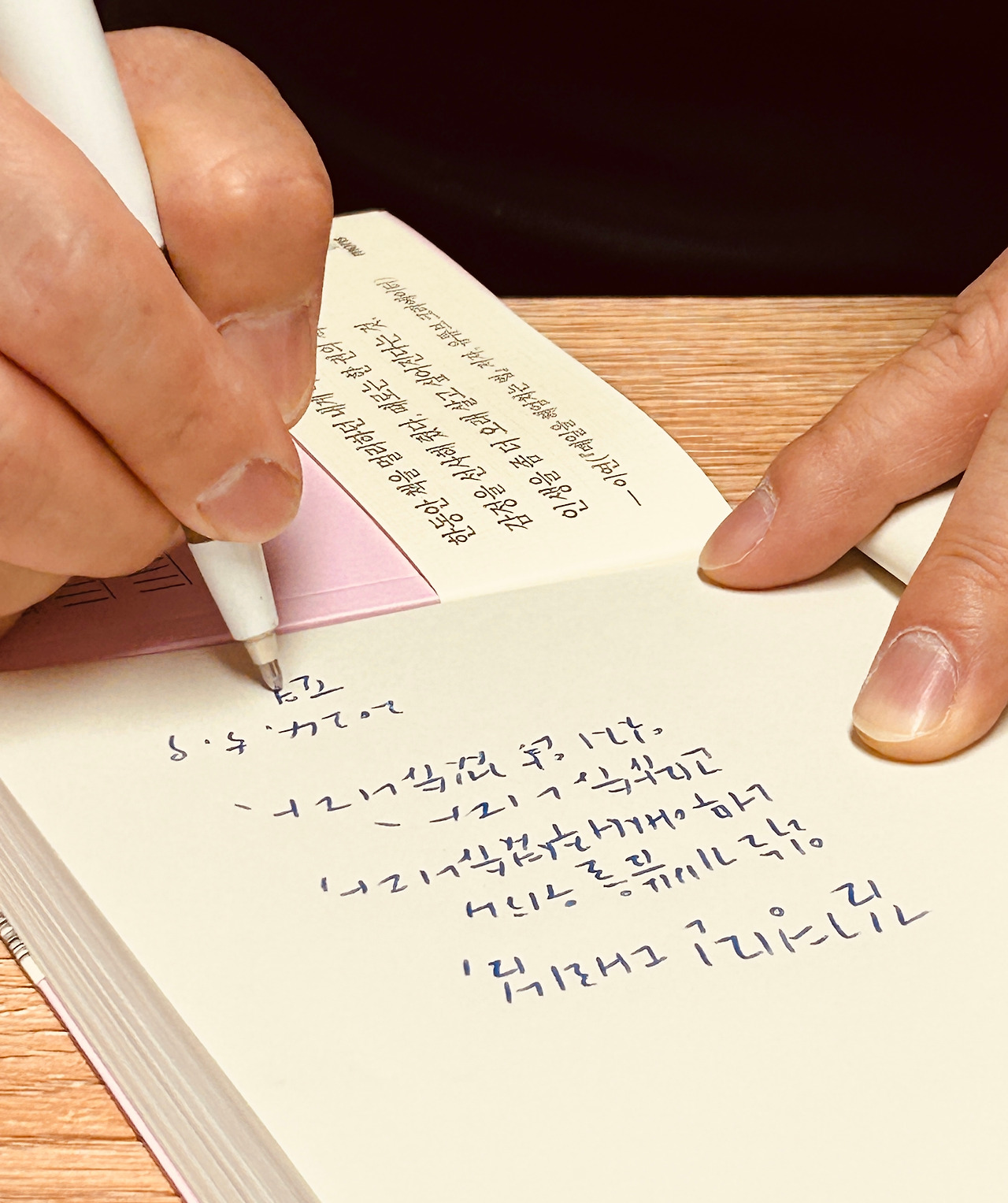 아래한글 원고부터 시작해 온라인 교정지 등으로만 보다가 막상 종이책으로 묶여 나온 걸 보니 너무 기쁘고 뿌듯하더군요. 이번 책은 특히 표지 디자인과 컬러가 마음에 듭니다. 저는 석윤이 디자이너에게 책을 예쁘게 만들어 줘서 고맙다고 적었습니다. 홍보를 맡아준 김경민 대리에게 제일 먼저 저자 사인을 해드렸고, 교정을 봐주신 신정진 교열자에게는 책을 깔끔하게 만들어 주셔서 고맙다고 썼습니다.