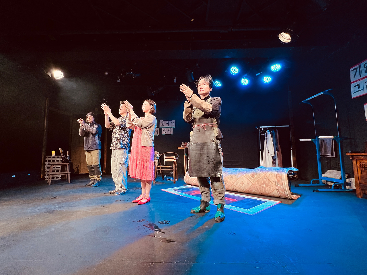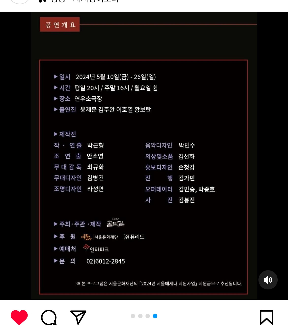 기발한 대사와 열정적인 연기로 인해 객석에선 웃음이 끊이지 않았다. 공연이 끝나고 극장 밖으로 나와 이호열 배우에게 인사나 하고 가려고 기다리고 있는데 조감독을 맡은 안소영 배우가 뒤늦게 와서 반갑게 인사를 했다. 내가 사진을 찍어도 되냐고 물었더니 흔쾌히 허락을 해서 아내까지 세 사람을 앵글에 담았다. '박근형 연출이 지금 오고 계시다'라면서 이호열 배우는 오늘 밤에 연극 연습이 있을 거라는 말도 했다. 박근형 연출이 대사를 아직도 고치고 있어서 또 연습이 필요하다는 것이다. 나는 "의욕 넘치는 작가님 만나서 배우들이 아주 죽어 나는군요."라는 얄미운 위로 인사를 하고는 집으로 돌아왔다. 이래서 박근형의 연극은 두 번 볼 때가 많다. 나중에 다시 봐도 이상하고 재밌기 때문이다. 2024년 5월 26일까지 대학로 연우소극장에서 상연한다. 재밌다. 보시라.
