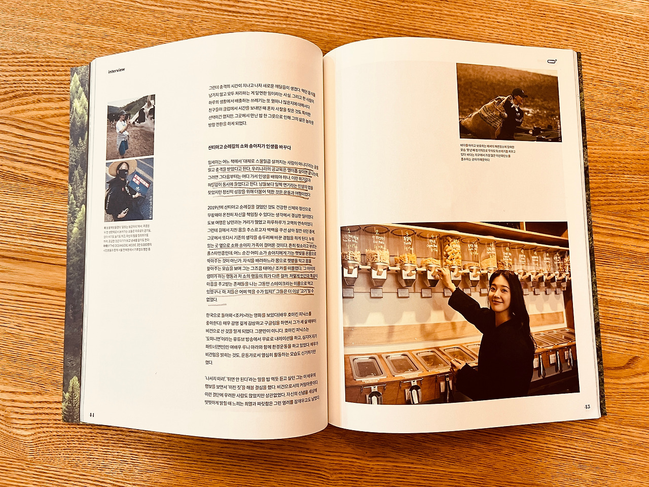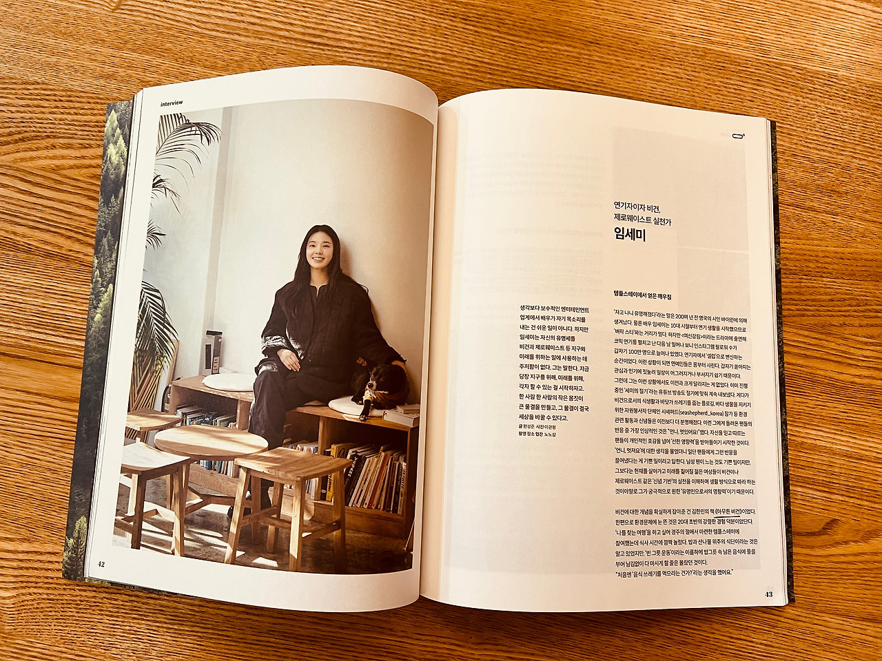 작가로서 의뢰를 받았지만 제가 임세미의 유튜브 ‘세미의 절기’의 팬이라는 점도 인터뷰를 성사시키는 데 큰 역할을 했습니다. 직접 환경운동을 하는 건 아니지만 연기자이자 비건, 그리고 제로웨이스트 실천가로서의 임세미를 좋아하고 응원하는 건 누구보다 열심이니까요. 그리고 비건인 임세미 씨와 페스코 베지터리안인 아내 윤혜자가 밥을 먹을 때 저도 그 식탁에 끼어 비건식을 먹는 멤버니까요.