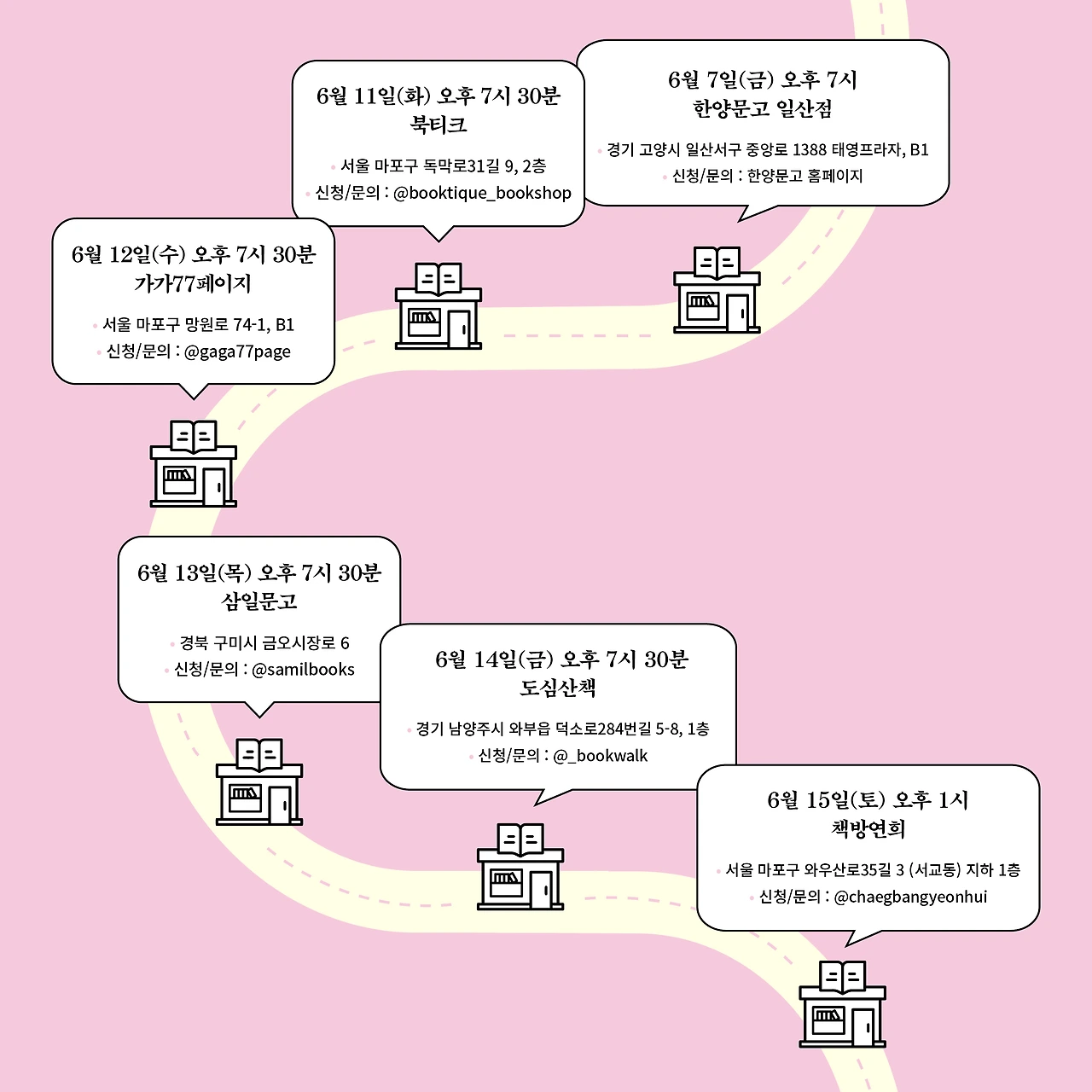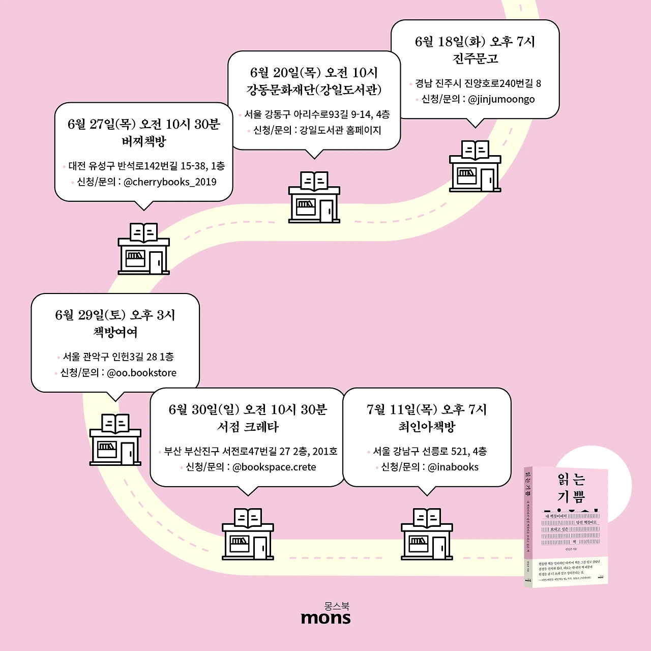 서울은 물론 멀리 부산, 진주, 대구 등에서 독자분들과 만나 읽고 싶은 책은 무엇인지, 읽었던 책 중 좋았던 작품은 무엇인지, 또 남들은 어떤 책을 읽나 등등 궁금한 이야기들을 허심탄회하게 나눠볼까 합니다. 일정표를 공유하니 많이 많이 신청해 주시고 주변 분들에게도 강력하게 권해 주십시오. 이번 책은 책을 좋아하는 당신이 만족하시리라 자부할 만큼 정말 열심히, 그러나 읽기는 쉽게 썼거든요.