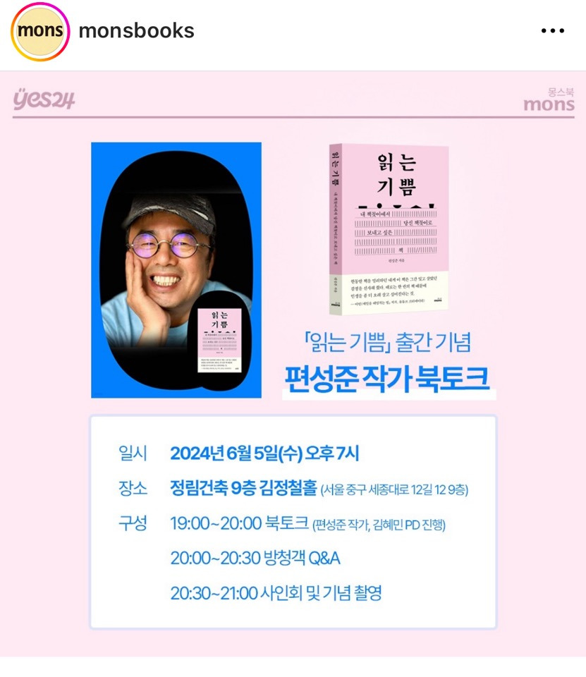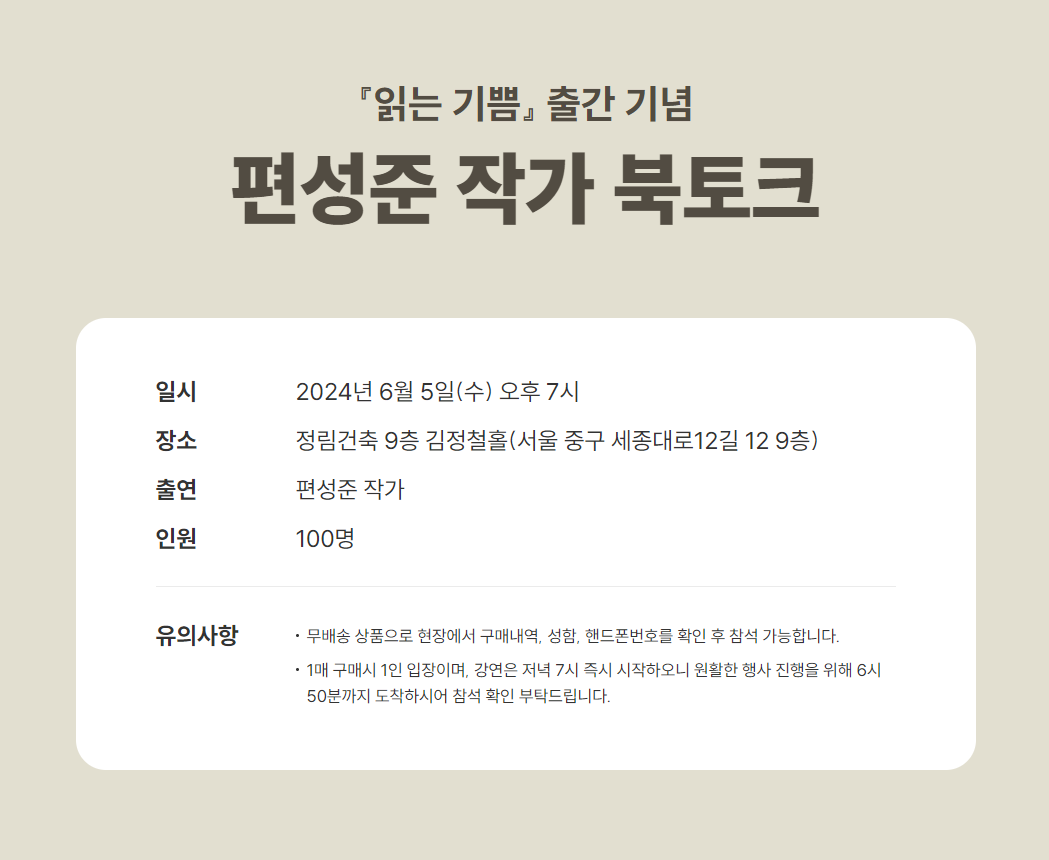 가까운 분들께 보내는 『읽는 기쁨』 북토크 초대장