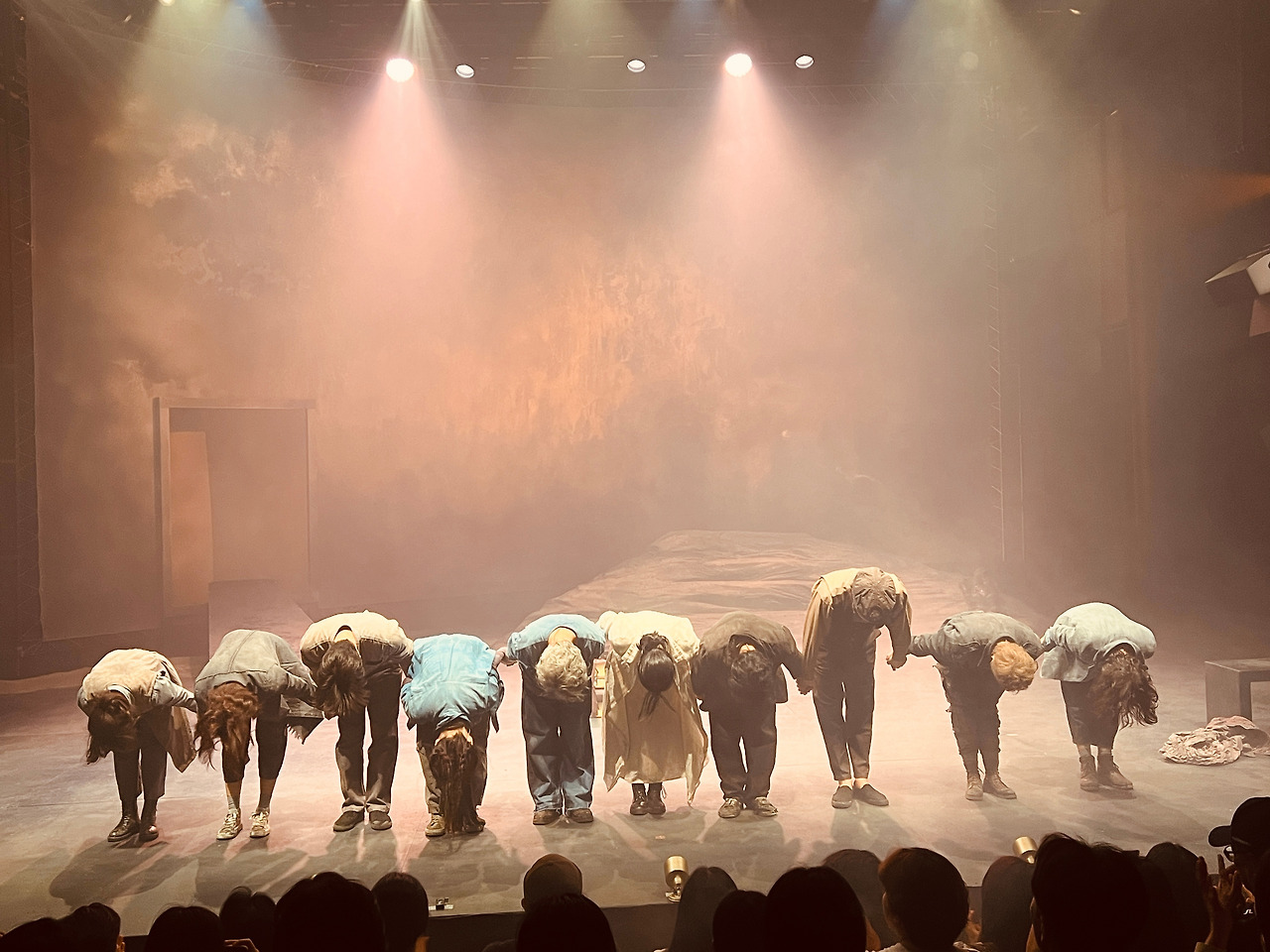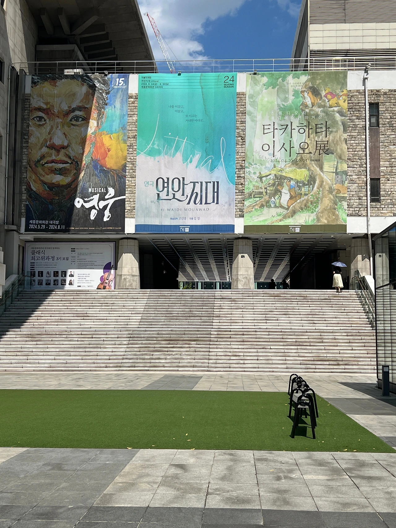 드니 빌뇌브의 영화 《그을린 사랑》으로 처음 만난 작가 와즈디 무아와드의 이 작품을 보기 전 희곡만 출판하는 출판사 '지만지드라마'에서 발행된 희곡집을 읽고 갔는데 그 선집은 지문이나 설명이 일절 없는, 그야말로 대사로만 이루어진 불친절한 책이었다. 그래서 이런 앙상한 희곡을 가지고 김정이 과연 어떤 연출을 선보일까 너무나 궁금했다. 결과는 기대 이상이었다. 연극을 본 감상을 한 마디로 압축하면 '김정 연출은 천재다'이다.