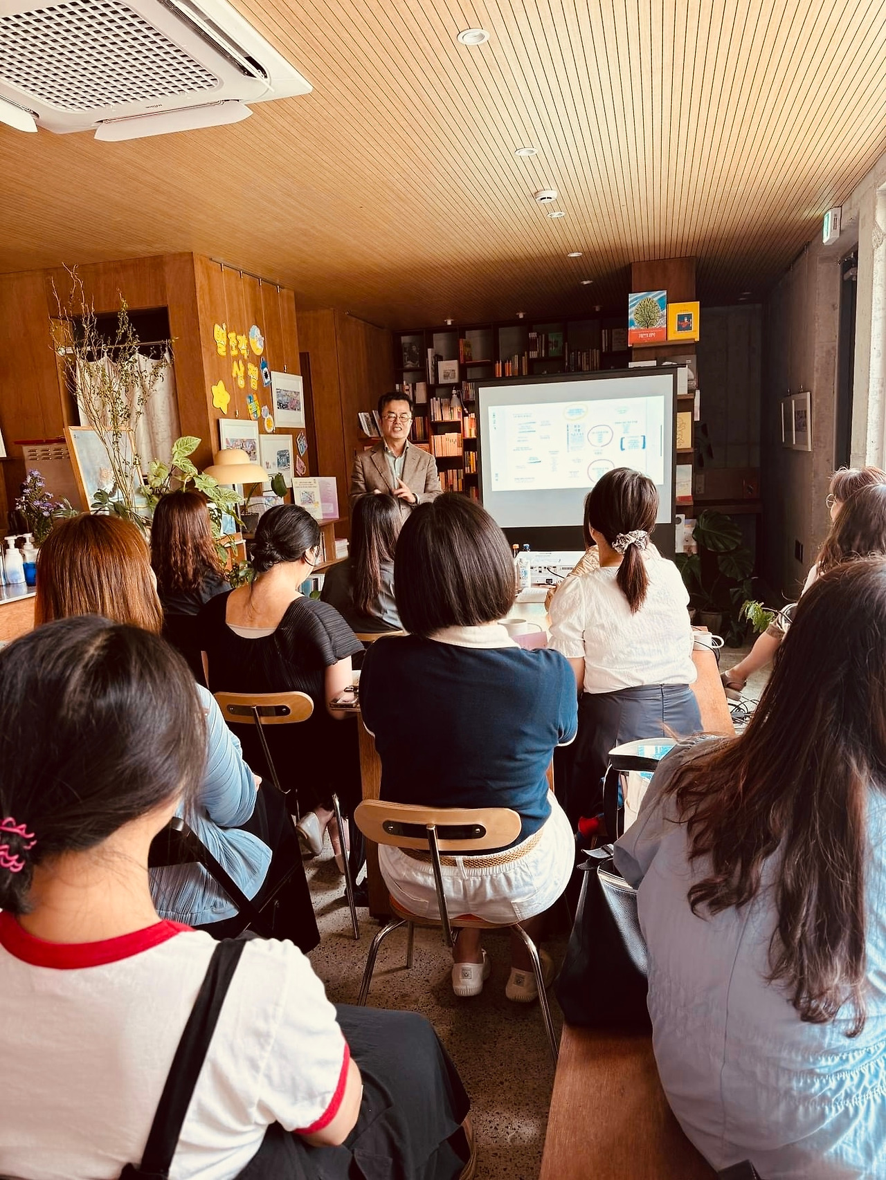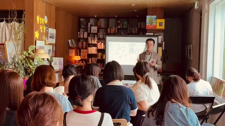 우리는 유성터미널에서 처음으로 반갑게 인사를 하고 그의 차를 타고 버찌책방을 향해 달렸다. 차 안에서 새삼 우리의 인연에 대해 여러 가지 이야기를 나누며 놀랐고 영진 님은 자기를 '영진 씨'라고 부르라고 했다. 책방에 들어서려는 순간 나를 반긴 사람은 '소행성 책쓰기 워크숍' 멤버인 강동완 선생이었다. 예산에 서는 강 선생이 부인과 함께 내 북토크를 보러 온 것이었다. 놀랍고 고마운 참가자였다. 감동완 선생은 사과파이가 가득 담긴 상자를 선물로 주시기도 했다.