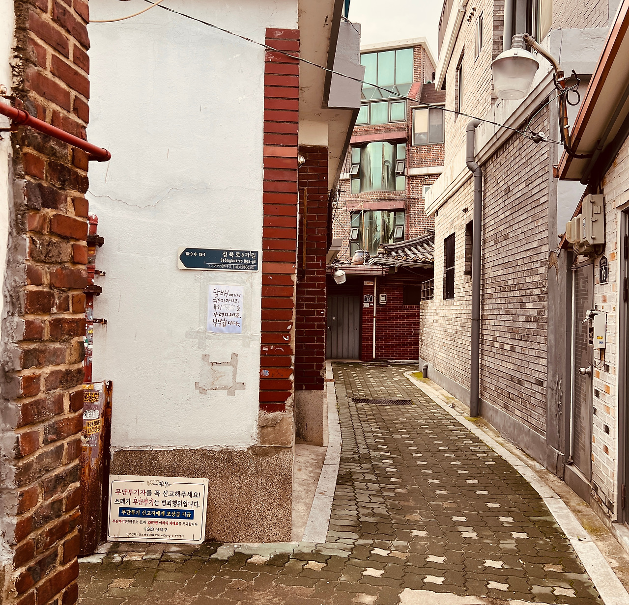 당분간은 이 골목에 오는 일이 없을 것이다. 우범골목이여, 안녕. 경고문이여, 잘 있어라. 네가 떨어지는 날 공중도덕과 양심도 같이 떨어지지 않기를 바란다. 한옥에서 4년을 살았고 이제는 서울 성북동과 보령을 오가며 '이상한 두 집 살림'을 하는 새로운 삶이 펼쳐진다. 구체적이 계획이 뭐냐고 물으면 "글쎄요. 글 쓰고 강연하고 기획하고, 책 쓰기 워크숍도 계속하고요. 뭐 어떻게든 되겠죠."라고 일단 대답을 할 생각이다. 지금까지도 그랬던 것처럼 나와 아내는 앞으로 잘 살아갈 테니 골목을 오가시는 범법자들이여, 제발 담배꽁초 버리지 말고 들고 가시라. 담배를 끊으라는 말은 차마 못 하겠다. 흡연은 당신이 선택한 불행이고, 금연은 너무나 어려운 일이라는 걸 잘 알고 있으니까. 참고로 나도 25년을 줄기차게 피우다가 끊었다. 아내를 만나기 전 해에 끊었으니까 12년 되었다. 살면서 가장 잘한 일 중 하나라고 생각한다. 두 번째는...... 천천히 생각해 보겠다. 너무 많아서.