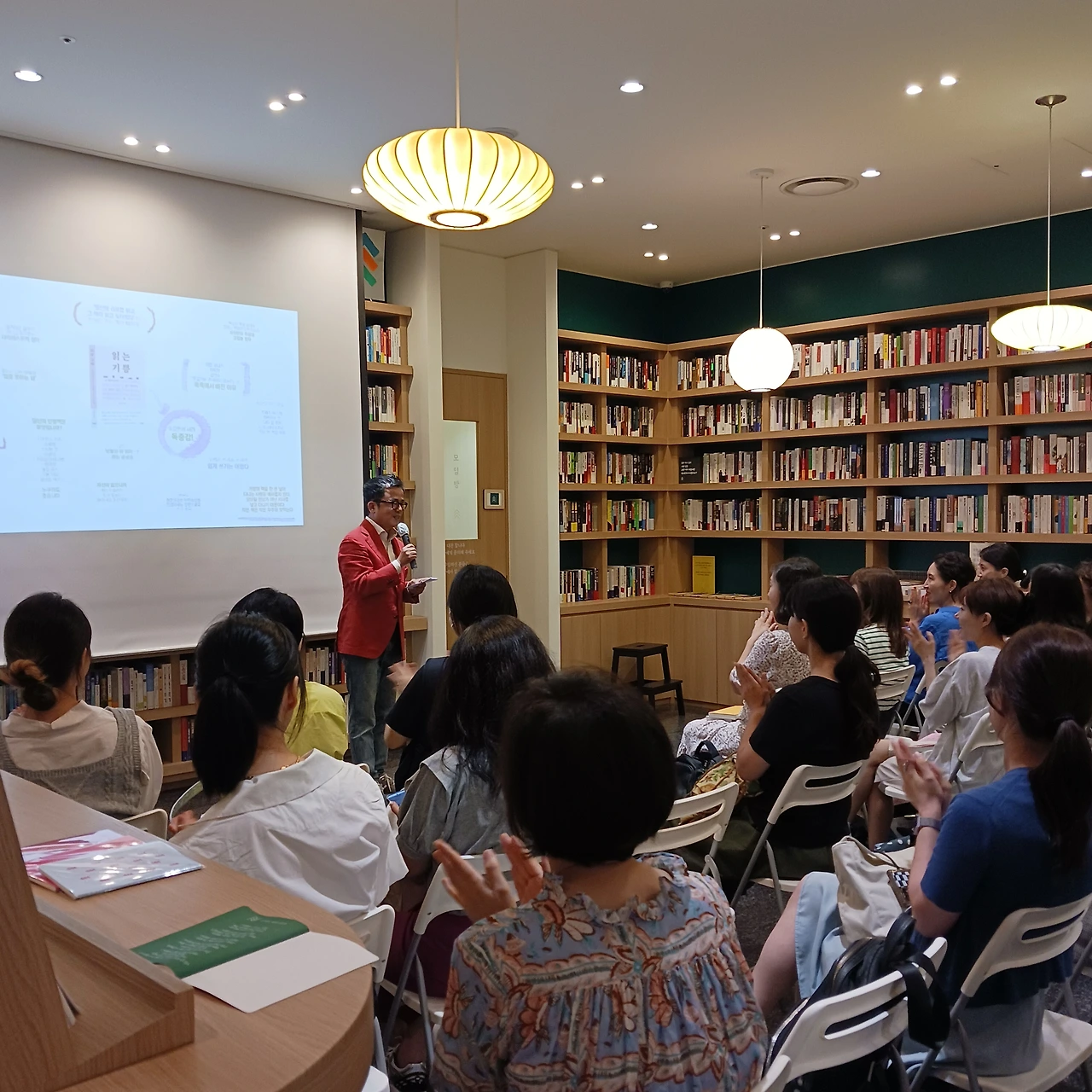 저녁 6시 30분쯤 서점 안으로 들어서니 정지현 매니저와 직원 두 명이 반갑게 저를 맞아 주었습니다. 최인아 대표는 안에서 회의를 하고 계시다고 하더군요. 사람들이 하나둘 모여들기 시작하더니 어느덧 40명 정원이 모두 찼습니다. 저는 카피라이터로 일하다가 회사를 그만두고 첫 책 『부부가 둘 다 놓고 있습니다』라는 책을 내게 된 사연부터 이야기를 시작했습니다. 거기 모인 마흔 명의 여성들(남성이 한 분도 없었습니다)이 눈을 반짝이며 제 이야기에 귀를 기울였습니다. 특이하게도 건축을 하는 친구 넷이 같이 온 팀이 있었는데 그중 한 분인 김순영 님은 건축 말고 다른 데도 좀 관심을 기울이자는 의견이 모아져 오게 되었다고 해서 박수를 받았고, 오로지 이 행사에 오기 위해 청주에서 아침부터 서둘러 왔다고 한 이윤지 님은 그날 북토크의 주체인 제게 큰 감동을 주었습니다.