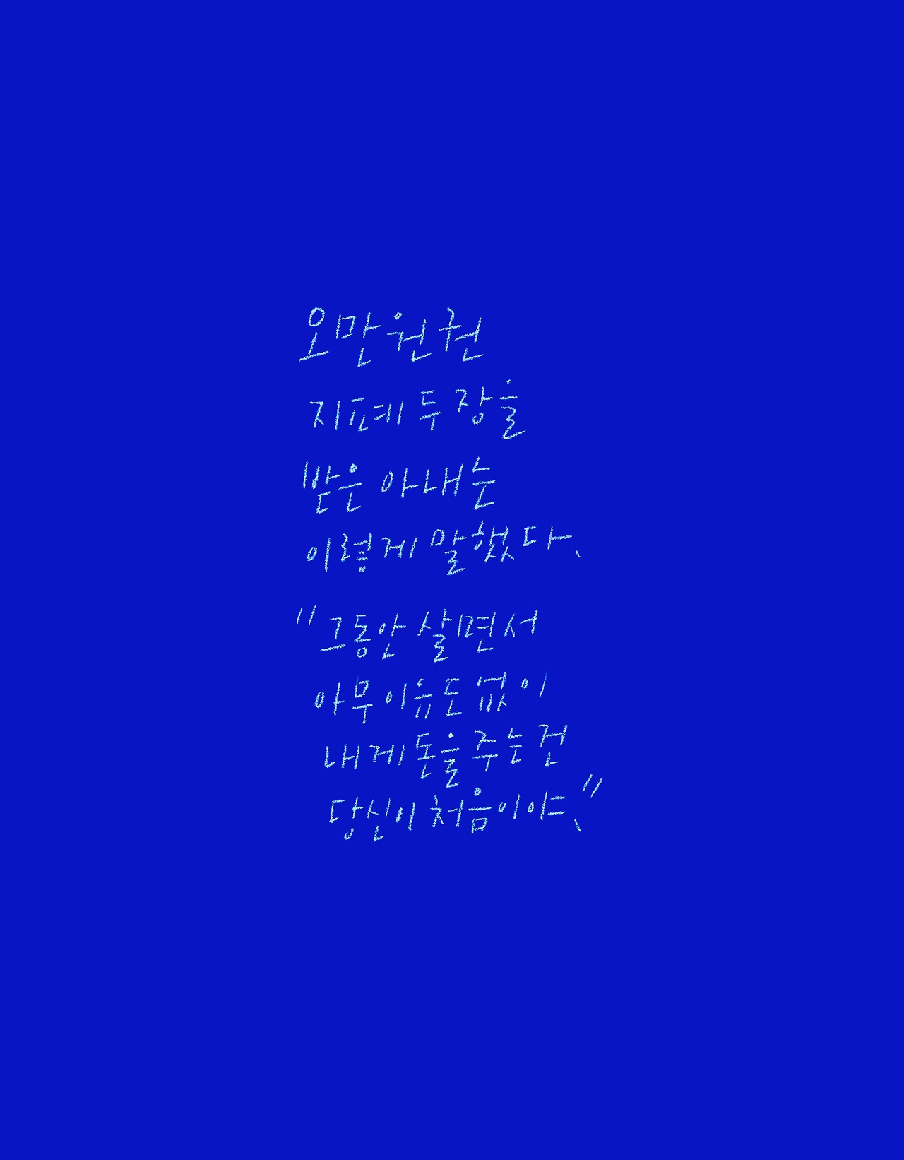 여보, 나도 살면서 이렇게 꾸준히 한 사람에게 야단을 맞거나 지적을 계속 당하는 건 처음이야. 싸워 보기도 전에 무조건 지는 것도 처음이고. 그런데도 그런 사람을 계속 좋아하는 것도 난생처음이네. 이상한 첫 경험이네.
