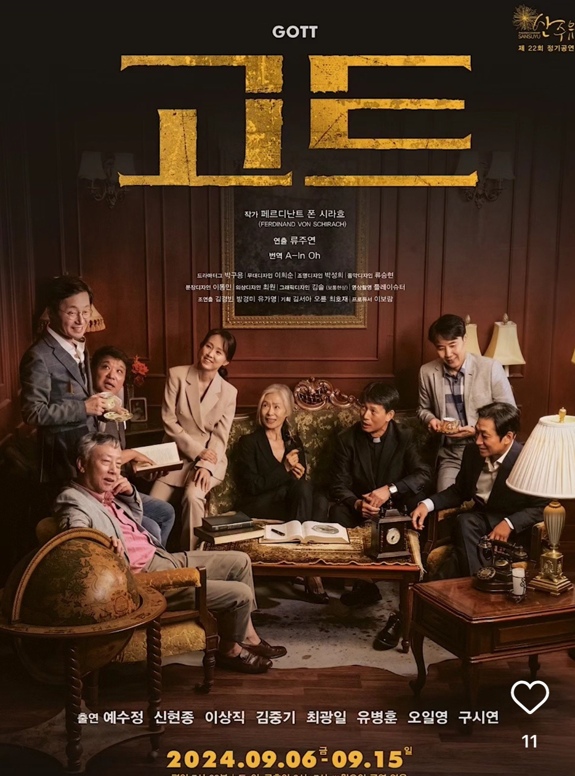 그런데 어제 이런 고민에 다시 불을 붙이는 논쟁적인 연극을 만났다. 독일 작가 페르디난트 폰 시라흐의 《고트( GOTT)》다. 극단 산수유가 제작해 국내 최초로 공연하는 이 연극은 3년 전 부인과 사별한 76세의 게르트너가 의사에게 자신의 죽음을 도와 달라고 청한 사건을 다루고 있다. 불치의 병에 걸린 것도 아니고 정신도 멀쩡한 노인이 단지 더 이상 살고 싶지 않다는 이유로 죽음을 원하는데 거기에 얼씨구나, 하고 의사가 독약을 처방하는 게 옳으냐 그르냐에 대한 문제 때문에 급기야 공청회가 열리는 것이다.