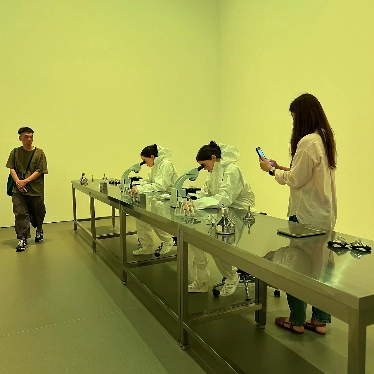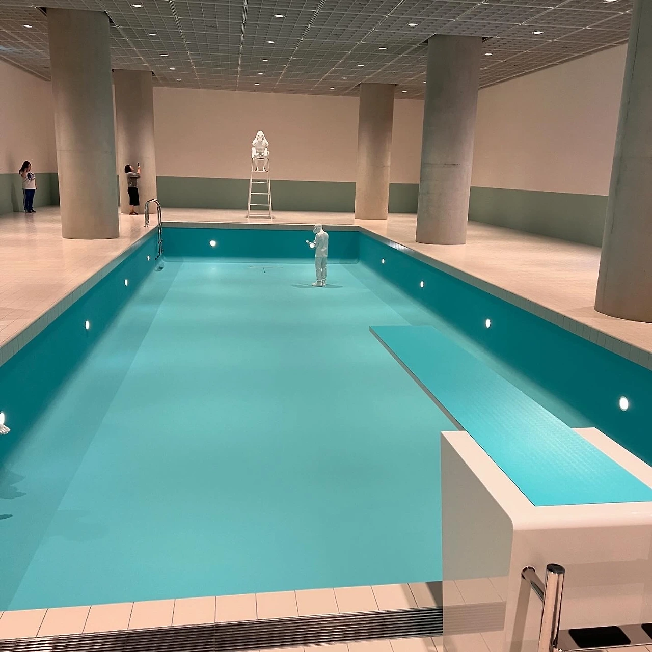 덴마크 출신의 마이클 엘름그린(Michael Elmgreen)과 노르웨이 출신의 잉가 드라그셋(Ingar Dragset)은 1995년부터 활동한 아티스트 듀오인데 그 상상력과 실천력이 호방하기 이를 데 없다. 이미 사막 한복판에 프라다 매장을 세운 영구 설치 작업 ‘프라다 마파(Prada Marfa, 2005)’에서 볼 수 있듯이 이들의 스케일은 입이 딱 벌어진다. 아모레퍼시픽미술관에도 실제 크기와 별 차이가 없는 풀장이 들어섰고 스테인리스로 정교하게 만들어진 주방과 실험실, 레스토랑 등을 둘러보고 있자면 이 많은 설치비와 수많은 인력들을 움직이게 하는 원동력은 무엇이었을까, 를 다시 한번 생각하게 된다.