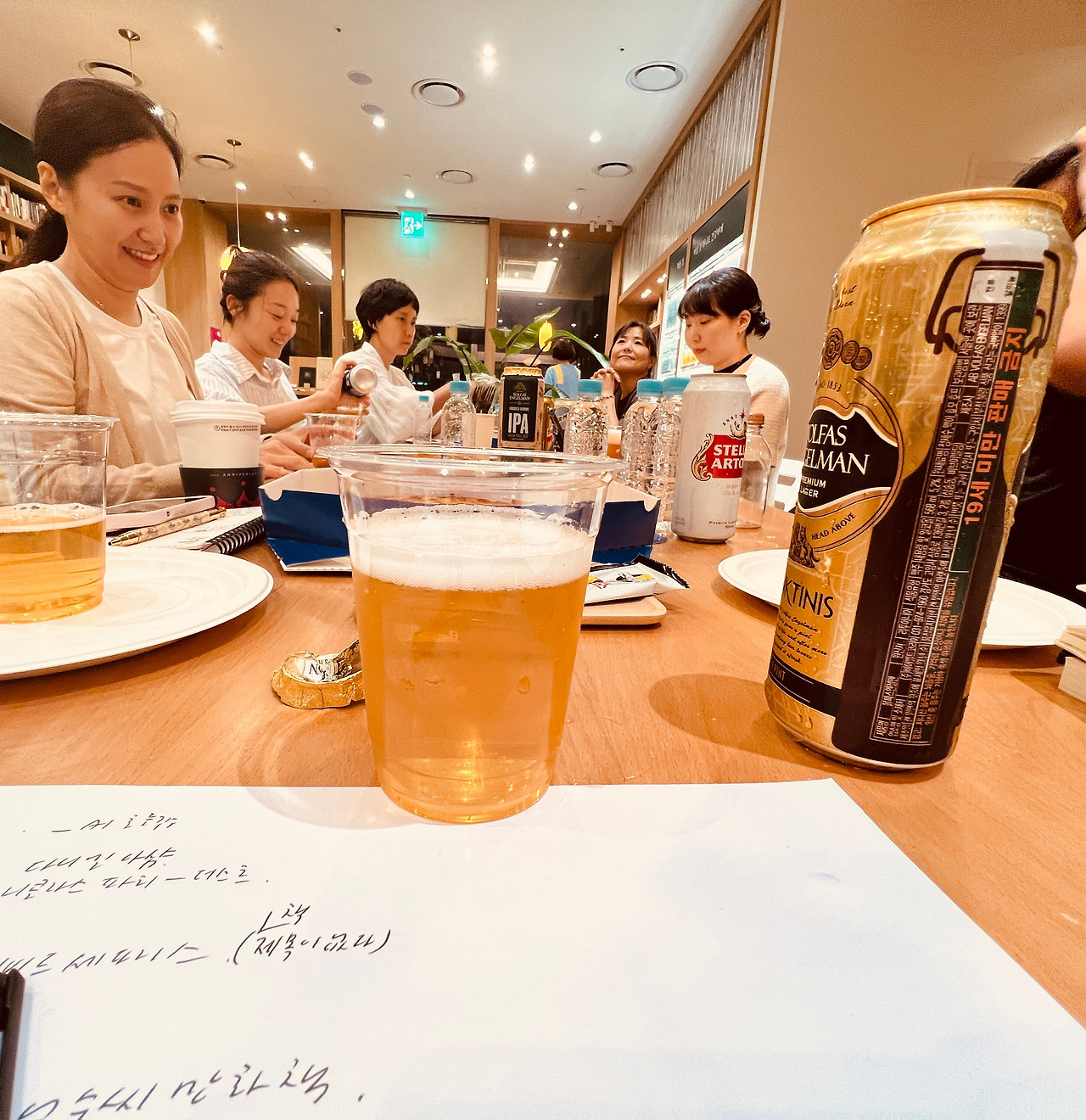 마지막 수업은 좀 일찍 끝내고 캔맥주라도 하나씩 마시며 밀린 이야기를 나누자면 어떻겠느냐고 했더니 모두들 좋다고 했다. 정지현 매니저가 맥주는 자기가 준비하겠노라고 말해 박수를 받았다. 어제인 2024년 9월 26일 저녁 7시 30분에 최인아책방 글쓰기 수업 마지막 시간이 시작되었다. 나는 영화 《해야 할 일》의 리뷰를 쓰고 올리느라 강연 시간이 임박해서야 겨우 도착할 수 있었다. 사람들은 이전과 달리 책상을 '맥주 대형'으로 바꾸어 앉아 있었다. 나는 직장인 글쓰기와 UX라이팅에 대한 글쓰기 팁을 소개하고 챗GPT를 이용해 글 쓰는 요령에 대해서도 설명했다. 내가 최인아책방에 대한 신문 칼럼을 쓰기 전에 챗GPT에게 물어 실제로 도움받은 과정을 질의응답 당시 글자 그대로 다 소개했더니 다들 눈을 반짝이면서 고개를 끄덕였다.