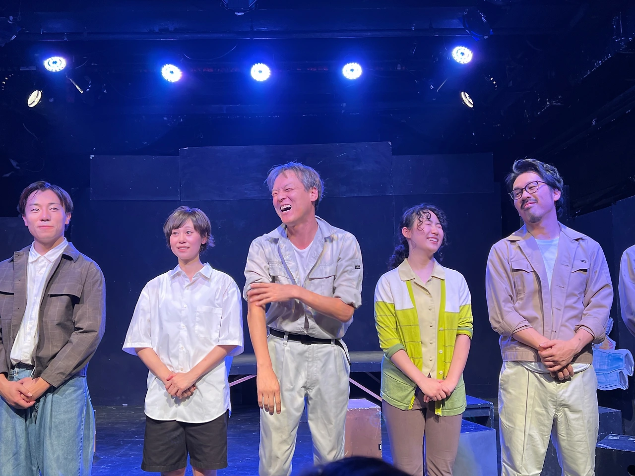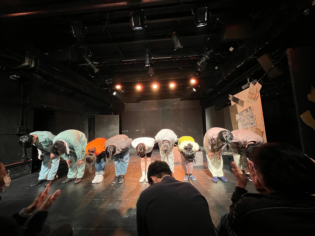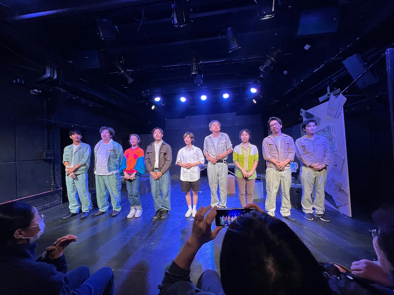 그런데 그들은 진짜 스파이를 하기엔 아는 것도 없고 능력도 없으므로 성귀 일당에게 농락당한 꼴이 되고 만다. 007 영화 얘기를 반복하며("머리카락이 얇아진 건 숀 코너리를 닮아가기 때문이야" "문레이커는 잊으라니까!")우습고 장난스러운 스파이 행각은 그래서 더 슬프고 애잔하다. 우리나라 연극과는 좀 다르게 과장된 동작과 표정을 창조하는 일본 배우들의 연기는 진한 페이소스를 자아내며 무대를 압도한다. 정말 소리소리 질러가며 다들 열심히 한다.