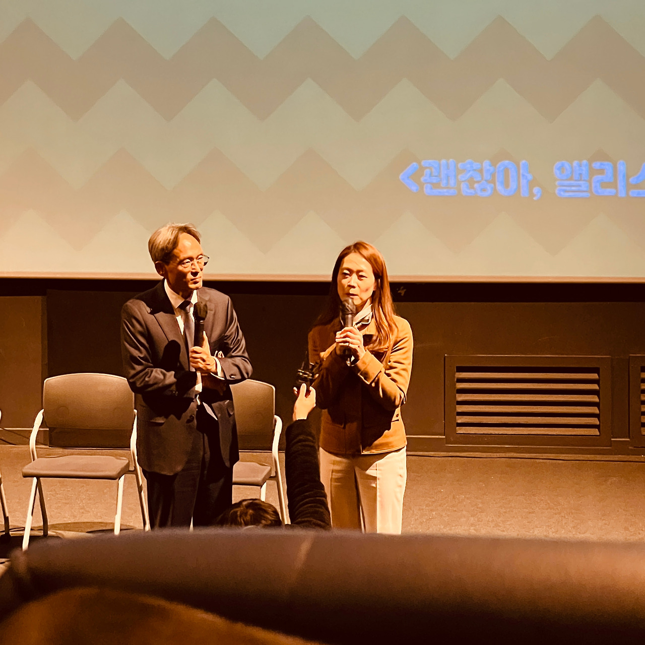 1년 내내 국어·영어·수학 같은 주요 과목은 하나도 안 배우고 시험 스트레스, 성적 스트레스도 없다. 여기 청소년들은 대입 준비 대신 춤이나 악기를 배우고 연극을 함께 만든다. 이런 학교 얘기를 하면 대한민국의 부모들은 미쳤다고 할 것이다. 그런데 진짜 그런 학교에 다니는 애들이 있고 그 학교에 자식을 맡긴 부모들도 있다. 그들은 말한다. 삶을 바꾸고 세계관을 바꿨더니 하루하루가 행복해지고 졸업 후에 낙오되기는커녕 대부분 자신이 하고 싶은 분야에서 인정받으며 살고 있다고. 이런 신기한 얘기를 들려주는 영화를 CGV용산 특별시사회에서 봤다. 강화도에 있는 '꿈틀리인생학교' 이야기를 담은 다큐멘터리 《괜찮아, 앨리스》다.