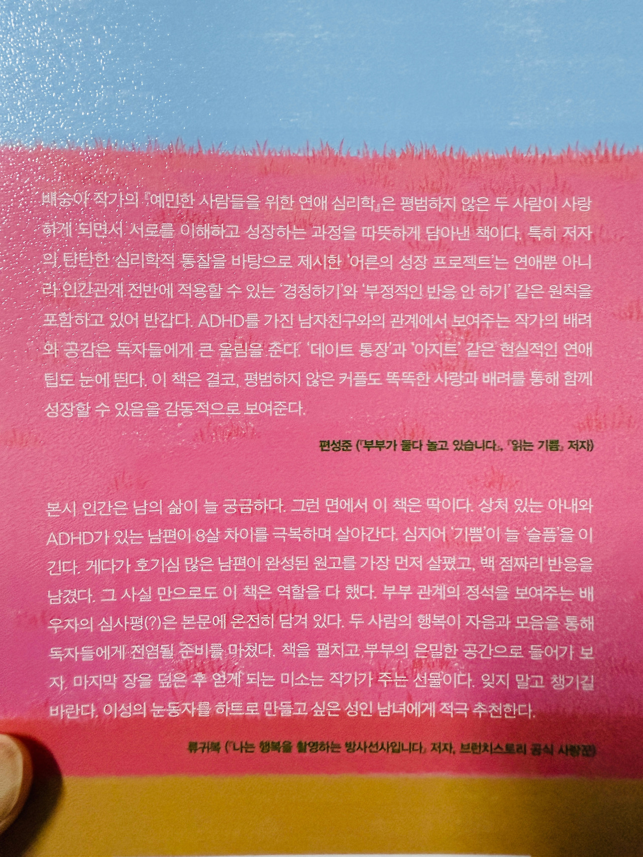 배승아 작가의 『예민한 사람들을 위한 연애 심리학』을 다시 한번 읽었습니다.