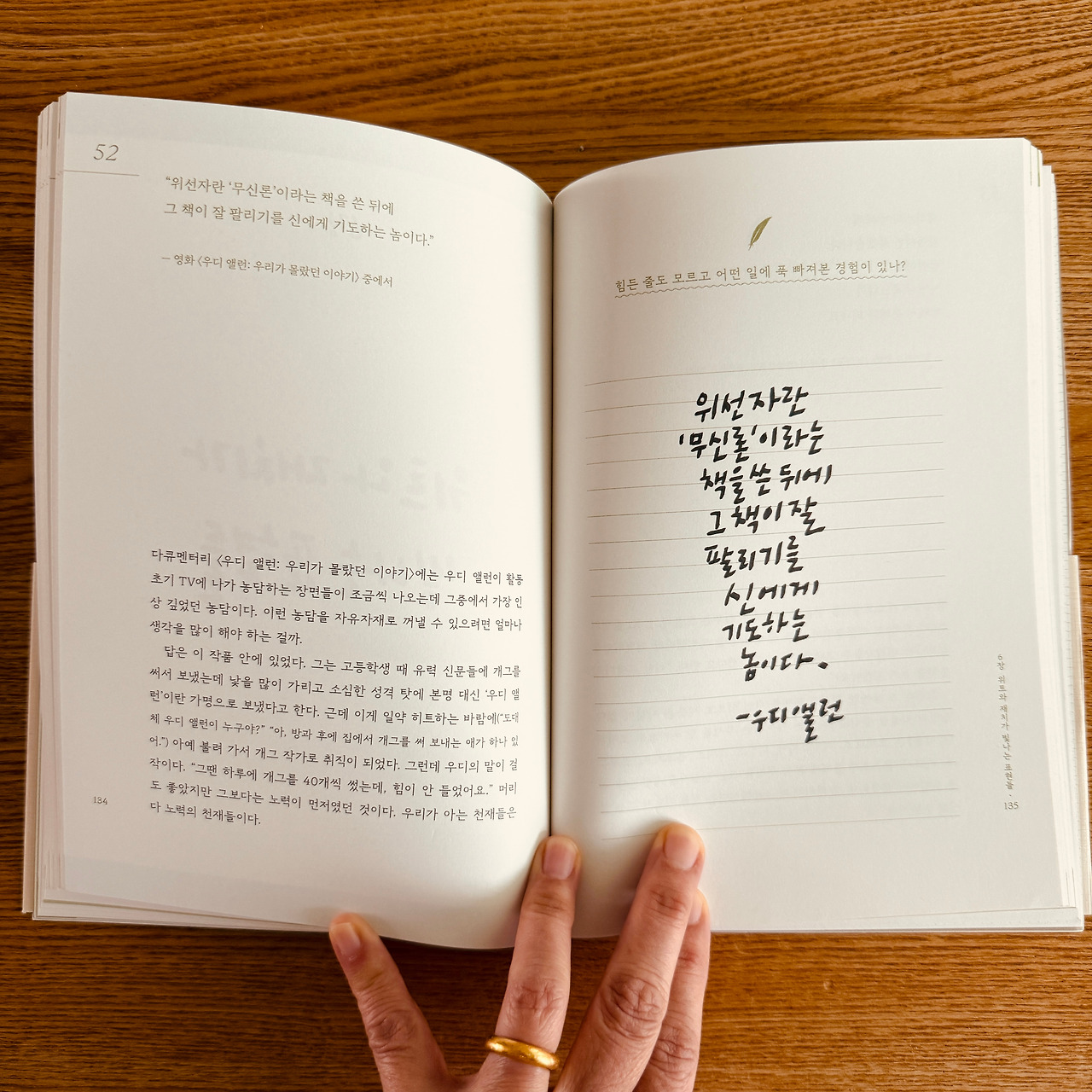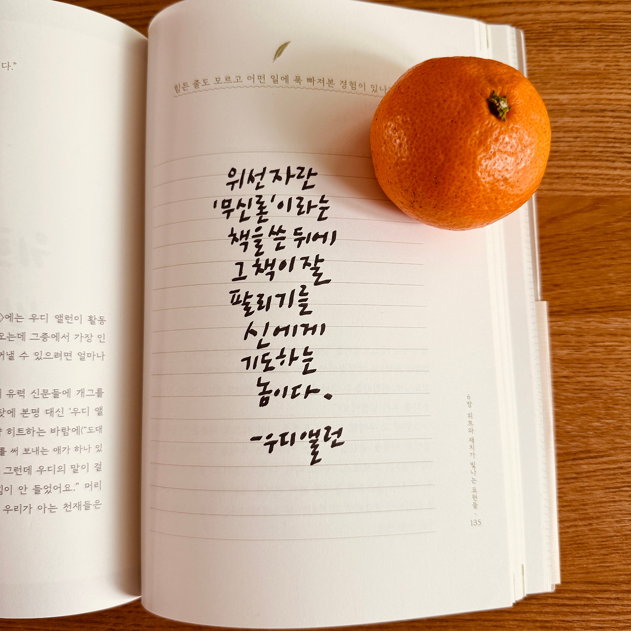 책의 초고를 출판사에 보냈을 때 편집부에서 가장 좋아했던 글은 우디 앨런의 이 짧은 농담이었습니다. 어떤 이슈에 대해 곧이곧대로 얘기하는 건 어렵지 않지만 우디 앨런처럼 뛰어나고 부지런한 사람은 짧은 글이나 말을 만들 때도 유쾌한 은유와 패러독스를 넣습니다.