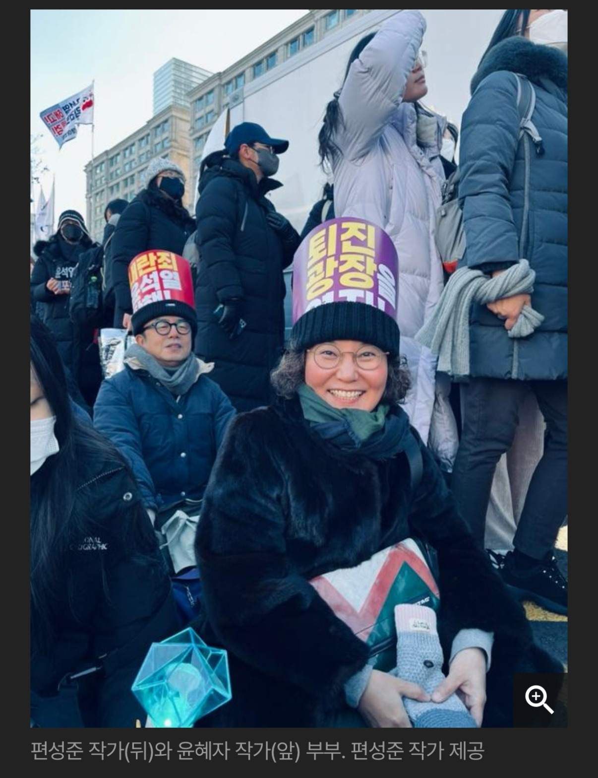 이번달 한국일보 칼럼은 윤석열 탄핵 촉구 집회 나갔던 이야기를 썼습니다. “전쟁은 너무 중요한 문제라 군인들에게만 맡겨둘 수 없다”라는 처칠의 말을 인용하며 직접 집회에 오지 못하더라도 제과점이나 커피숍 선결제를 한 사람들의 마음을 생각해 보자 했고, 우리의 정체성은 평소 무얼 먹고 어떤 상표의 가방을 드느냐가 아니라 어떤 생각을 가지고 어떤 행동을 하느냐에 따라 결정된다고 썼습니다. 사진을 몇 장 보냈는데 에디터가 하필 제일 웃긴 사진을 올려주셨더군요. 이 사진은 그날 같이 여의도에 나갔던 강종희 선생이 찍어 주셨습니다.