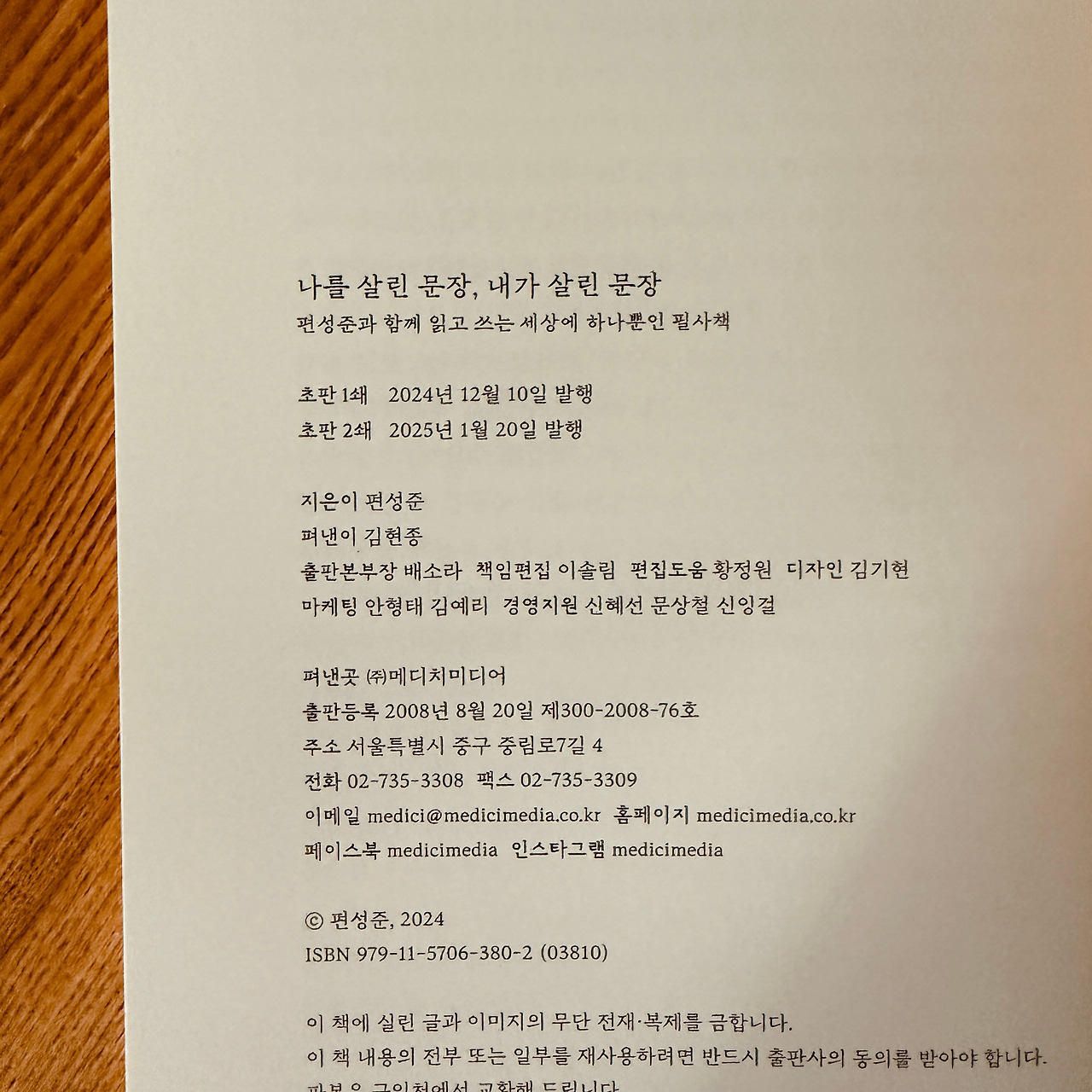 메디치미디어에서 12월 10일에 펴낸 필사책 『나를 살린 문장, 내가 살린 문장』 2쇄 본이 방금 보령으로 도착했습니다. 1월 20일이라 찍힌 걸 보니 40일 만에 2쇄를 찍었군요. 책이 나오자마자 계엄령으로 세상이 멈춰 서서 맘고생이 많았는데 그래도 책을 찾아주신 분들이 많아 다행입니다. 기쁜 소식에 좀 더 용기를 내보겠습니다. 아직 안 읽어보신 분들은 2쇄를 찍은 믿을 만한 책이니 구입해 직접 읽어 보시거나 지인들 새해 선물로 활용해 주시기 바랍니다. 고맙습니다.
