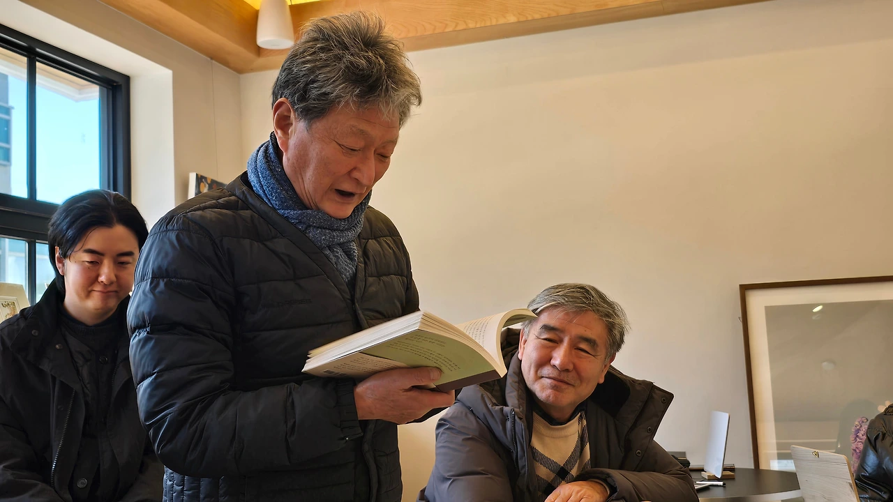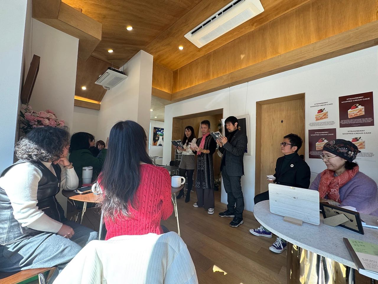 그런데 대학로 크림슨파더에서 '희망을 전하다' 전시를 기획한 한선우 대표님이 손을 내밀었습니다. 행사 안에 제 책 『나를 살린 문장, 내가 살린 문장』(메디치미디어) 북토크를 해보자는 것이었습니다. 제주에서 활동하는 이상훈 배우에게 낭독을 부탁하자 한 사람도 한 대표였습니다. 하지만 계엄 여파 때문에 홍보를 제대로 할 수 없었고 한 차례 연기를 해 2월 22일 토요일 오전 11시에 북토크를 열었습니다.