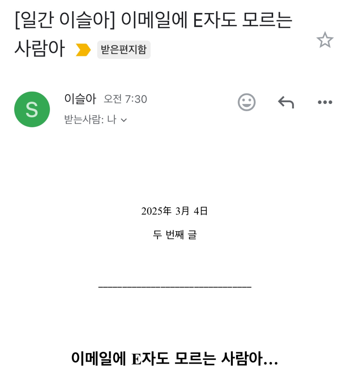 일간 이슬아를 다시 구독합니다. 궁금해서 만 원을 송금하고 구독 버튼을 눌렀습니다. 전과 얼마나 달라졌을까, 분명히 더 좋아졌을 것이야, 라고 생각 헸습니다. 이제는 '일간 이슬아'를 하지 않아도 살 수 있을 텐데 굳이 이걸 다시 하겠다고 무거운 십자가를 짊어지는 그 이유와 태도가 궁금해졌습니다. 그리고 어제오늘 첫 번째와 두 번째 글을 읽었습니다. 첫 번째 글엔 이메일 쓰는 이야기를 시작하면서 산울림의 '내 마음에 주단을 깔고'라는 노래와 치킨집 소스 등으로 고개를 끄덕이게 하는 유려한 스토리텔링이 들어 있었고, 두 번째 글에서는 이슬아 대신 이메일 쓰는 일로 월급을 받는 복희 씨 이야기가 나오는데 팩트만으로도 이렇게 재밌을 수 있다는 것을 보여주는 글이었습니다. 다 읽고 나니 팩트에 진심까지 더했기에 이슬아의 글이 많은 사람들에게 사랑을 받는 것이 아닐까 라는 생각이 들었습니다.