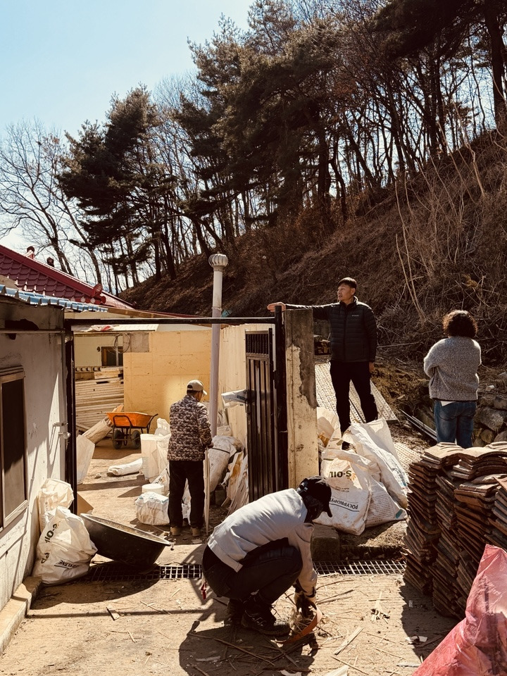 2월 17일부터 시작된 공사가 한창 진행 중이고 우리는 신축 공사로 인해 늘어난 비용 때문에 골머리를 앓고 있다. 임정희 목수님, 김치열 목수님, 장 반장님, 그리고 새로 들어온 건희 씨까지 네 사람 한 팀이 보령의 모텔을 잡고 숙식을 하며 공사를 하고 있다. 전기 윤경만 반장님은 필요할 때만 보령으로 내려오신다. 아무리 생각해도 우리가 임 목수님을 만난 건 행운이다. 임 목수님은 PM역할을 정말 잘한다. 늘 일기예보를 보고 비가 올 때를 대비해 공정을 짠다. 아침 7시면 시작되는 공사는 오후 4시면 끝이 나고 점심 식사 때는 막걸리 한 잔도 허용하지 않는다. 우리는 찔끔찔끔 간식을 사가지고 가는 대신 이주일에 한 번씩 고기 회식을 하기로 했다. 공사 첫날엔 삼겹살집에서 점심을 먹었고 장어와 삼겹살 회식 때는 인부들과 어울려 술도 많이 마셨다. 물론 임 목수님은 한 잔도 마시지 않았다. 원래 술을 싫어하는 사람인 것이다.