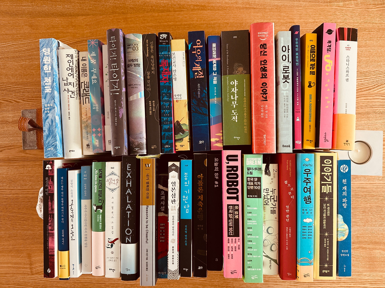 다만 남은 시간이 너무 촉박하더군요. 3월 셋째 주부터 행사를 시작해야 하는데 당장 읽어야 할 책 리스트를 뽑아야 한다는 것이었습니다. 저는 일단 제 방 책꽂이에 있는 작품들을 골라보았습니다. 천선란이나 김초엽, 차무진, 김동식 작가 등이 눈에 띄었고 평소 좋아하던 테드 창, 켄 리우, 존 스칼지, 찬호께이, 아서 C. 클라크 같은 외국 작가들의 작품을 섞어서 리스트를 만들면 되겠다는 생각이 들었습니다.