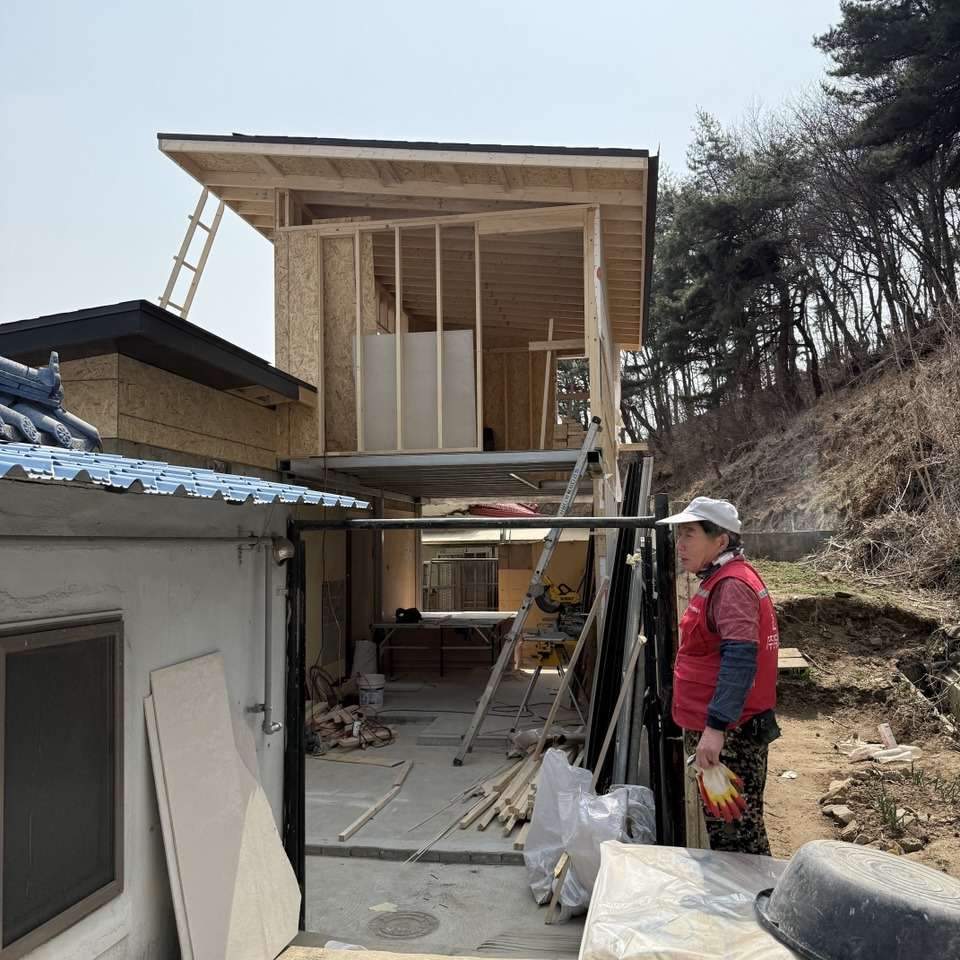 주말 작업을 쉬지 않은 덕에 뒷채가 올라갔습니다