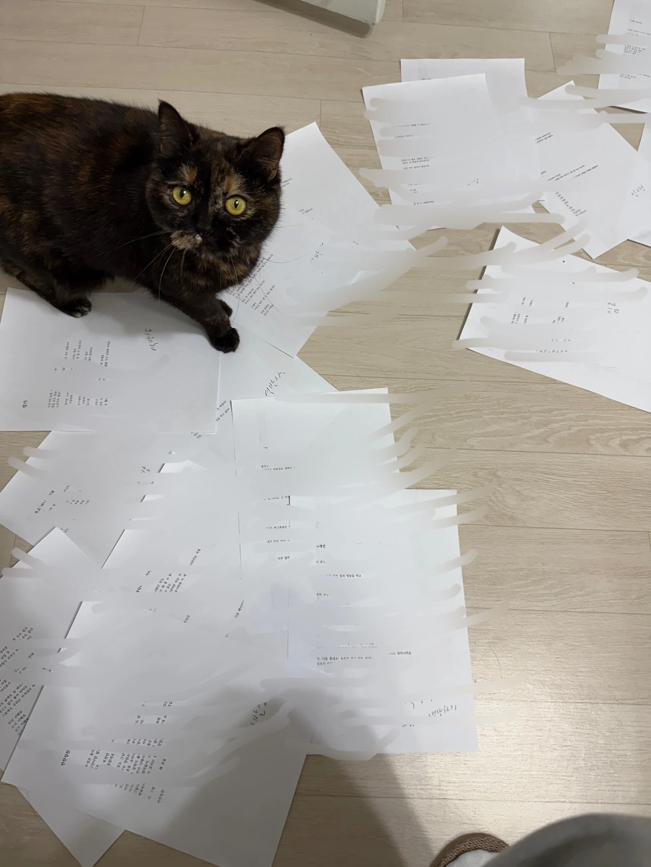 함께 차를 타고 나오다 아내를 스타벅스 DT점에 데려다주고 나는 집에서 일을 하기로 결정했다. 그녀는 다음날 보내야 하는 조선일보 칼럼을 마저 써야 하고 나는 몽스북 안지선 대표님이 부탁한 모 작가의 신작 에세이 편집 일을 해야 하기 때문이었다. 스타벅스에서 아내와 커피를 한 잔 하고 집으로 가서 프린트한 원고에 한 장 한 장 메모를 해서 마루 바닥에 늘어놓으며 분류하고 책 제목에 맞는 부제와 챕터 제목들을 메모했다. A4지만 보면 좋아서 환장을 하는 순자가 바닥을 마구 뛰어다니며 종이들을 유린했다. 나는 작가의 카카오톡 메신저를 열어 내가 가장 마음에 드는 원고 한 편을 거론하며 "이 글이 최고"라고 했더니 작가가 좋아했다. 그는 지금 콘서트를 보러 와 있다고 했다. 나는 급하게 카톡을 닫고 아내를 데리러 스타벅스로 갔다.