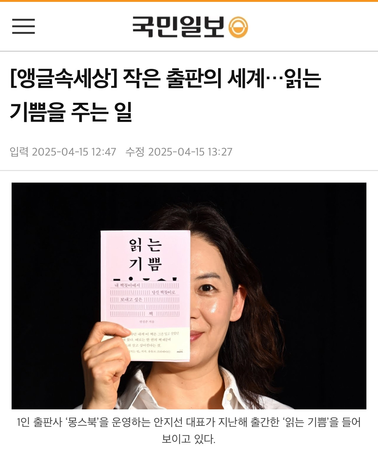 몽스북 안지선 대표의 국민일보 인터뷰