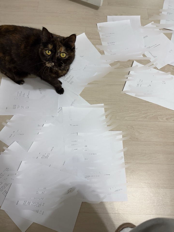 급하게 '책 만드는 일'이 하나 들어와 지난주부터 읽기 시작하다가 일요일부터 화요일까지 사흘간은 꼼짝 못 하고 원고만 읽고 다듬어야 했다. 나하고도 친하게 지내는 저자의 새 아포리즘 모음집인데 제목만 정해져 있고 나머지는 아직 초고 상태라 할 일이 많았다. 아내가 스타벅스에서 조선일보 칼럼을 마감하는 동안 나는 원고를 모두 프린트해서 마룻바닥에 늘어놓고 분류를 했다. A4지만 보면 환장을 하며 좋아하는 순자가 뛰어와 방해공작을 폈다. 하지만 나도 거기에 굴할 정도로 내공이 약하진 않다. 나는 순자와 싸우고 원고와도 싸워가며 열심히 일을 했다.