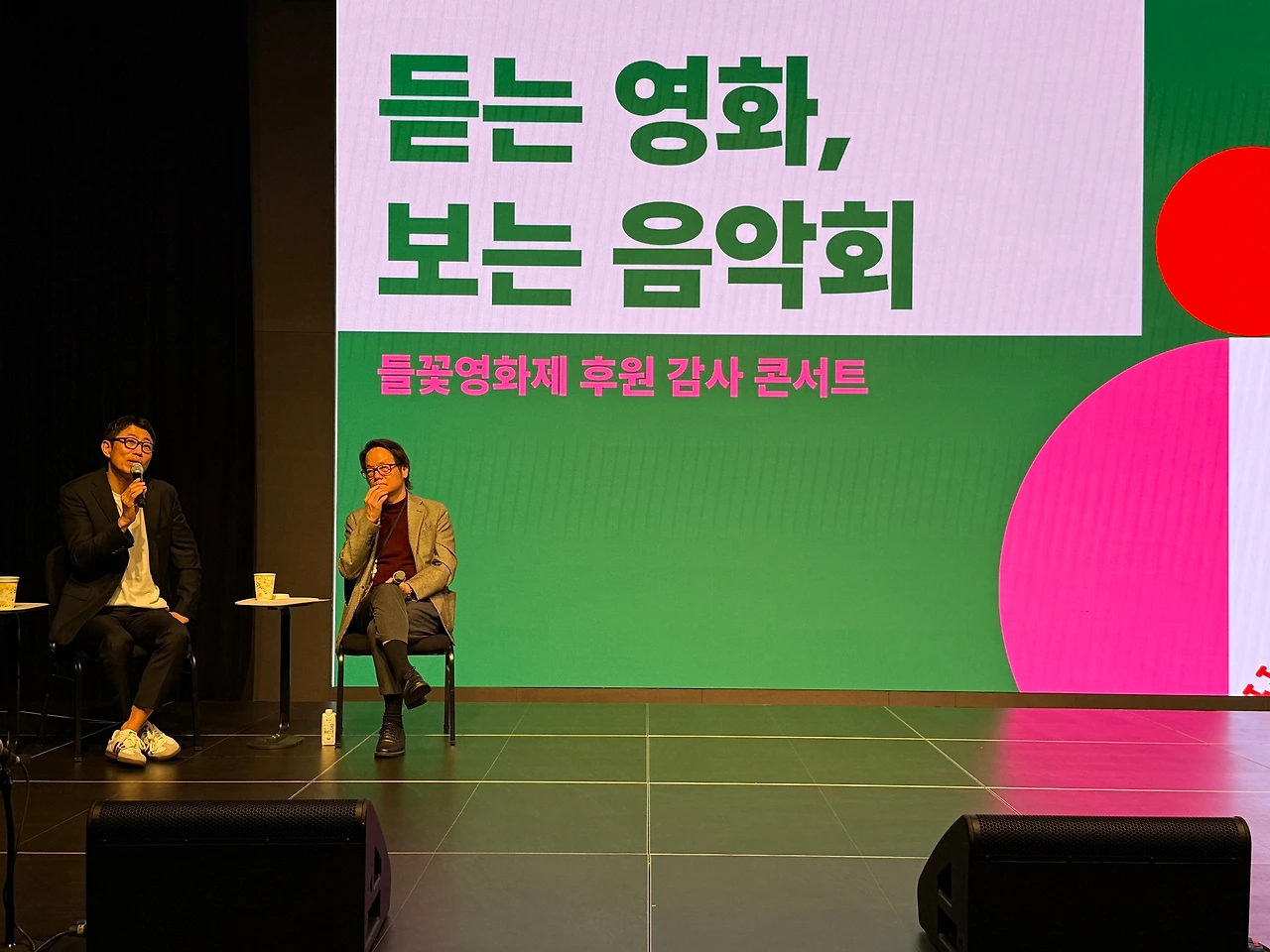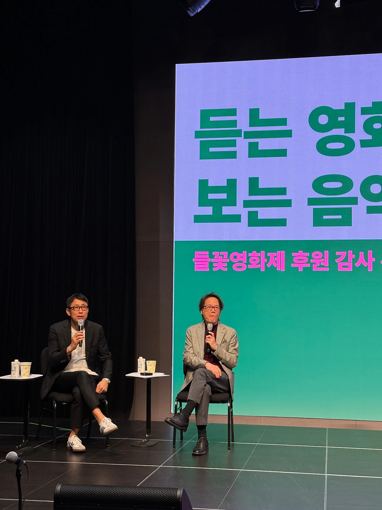 어제 노무현시민센터에서 열린 '들꽃영화제 후원 감사 콘서트'에 갔습니다. 오동진 기자가 만들어 해마다 열리는 들꽃 영화제를 후원하는 사람들에게 감사하는 마음으로 열린 토크 콘서트죠. '보는 음악, 듣는 영화'라는 주제로 오동진 기자와 김태훈 팝 칼럼니스트가 대담을 나누었는데 영화와 음악에 진심인 두 사람의 깨알지식과 자학적 유머가 팝콘처럼 튀는 현란한 토크쇼였습니다.