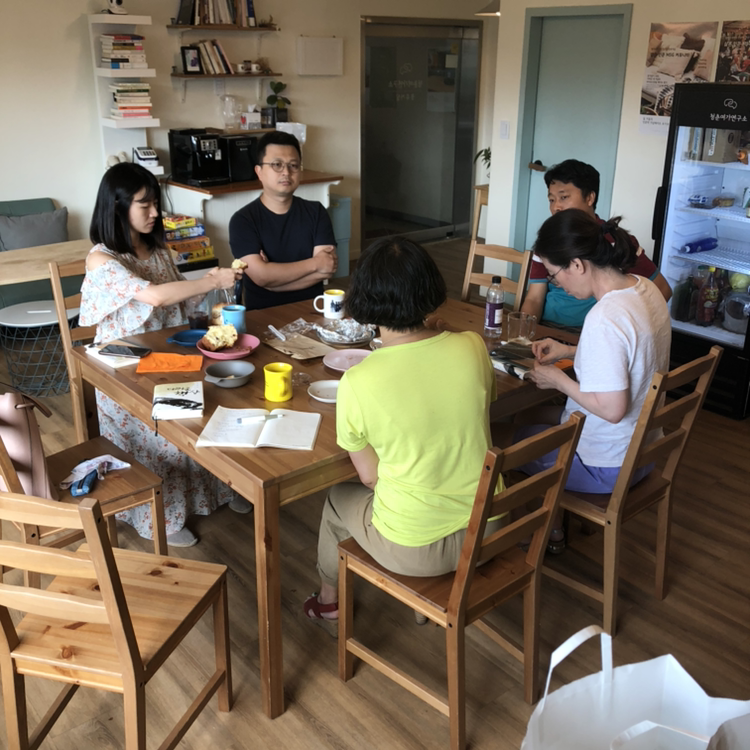 2019년 8월 17일 오후 2시. 광화문과 서소문 사이에 있는 피어선빌딩 안에 있는 청춘여가연구소에 모인 우리들은 가방에서 책을 꺼내며 각자 가져온 간식도 함께 꺼내놓았습니다. 저는 점심을 먹었음에도 불구하고 뭔가 어린애처럼 시장한 느낌을 지우지 못하고 윤혜자 씨와 김성희 씨가 사 온 빵을 아귀아귀 먹고는 금세 배가 불러 헉헉거려야 했습니다. 연구소에 얼음을 만드는 기계가 있길래 윤혜자 씨가 켜보려다가 실패했었는데 여름 사나이 서동현 씨가 오더니 단박에 기계를 작동시켜 얼음을 만드는 바람에 회원들의 박수갈채를 받았습니다.