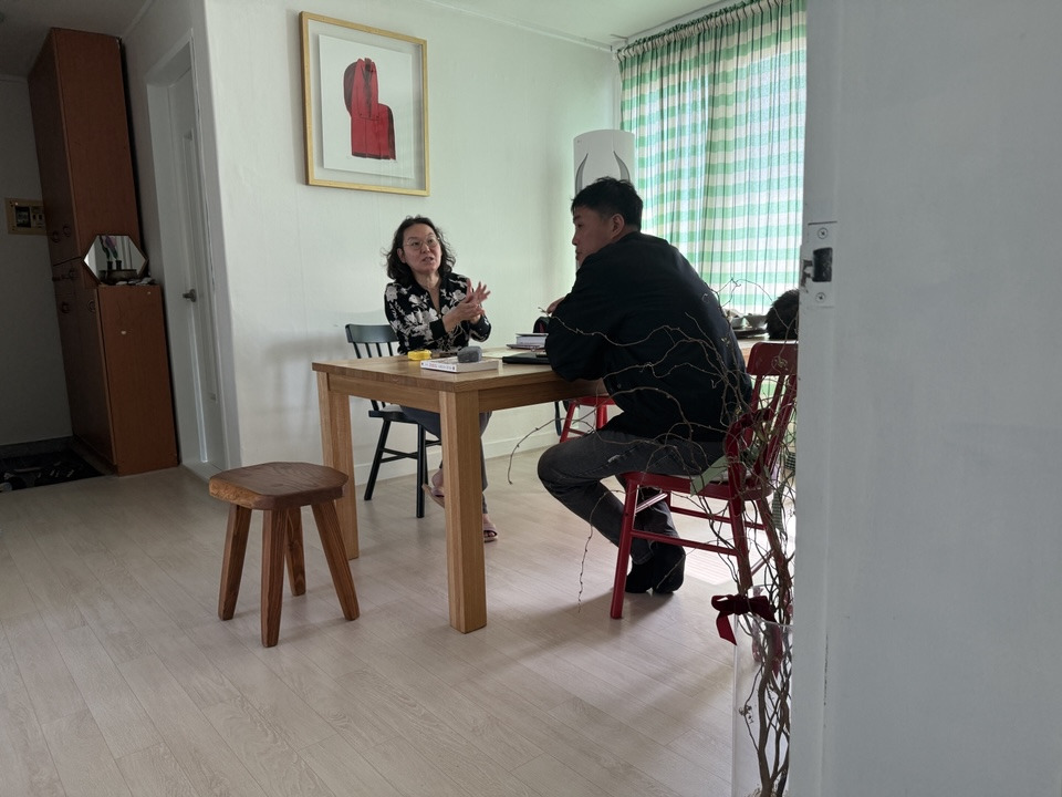 베테랑 기사님의 손은 빨랐다. 현장을 지키고 있던 임 목수님과 인사를 하고 얘기를 나누는 동안 기사님은 재빠르게 에어컨과 실외기를 설치할 장소를 우리에게 인식시키고 작업이 들어갔다. 이층으로 올라가니 창밖 데크 위로 떨어지는 빗방울들이 마음을 따뜻하게 두들겼다. 이층 내 작업실은 언제 올라와도 기분이 좋고 설렌다. 아내와 나는 목수님과 기사님을 믿고 먼저 가겠다고 하고 자동차에 올랐다. 비가 미친 듯이 쏟아져서 천천히 갈 수밖에 없었지만 바쁜 일정이 아니니 큰 걱정은 없었다. 군산에 거의 다 도착했을 때쯤 기사님에게서 에어컨 설치 작업 사진들이 도착했다. 사진과 함께 도착한 메시지엔 "층계 앞 에어컨을 달다가 작은 기스(일본어 ‘キズ(kizu)’에서 유래된 말로, 흠집이나 상처를 뜻한다)가 났는데요..."라는 걱정의 글이 담겨 있었다. 흠집이 났다는 말에 사진을 확대해 보았다. 정말 아무 상관도 없는, 작은 흠집이었다. 우리는 이 정도는 정말 괜찮다고, 수고하셨다고 답장을 했다.