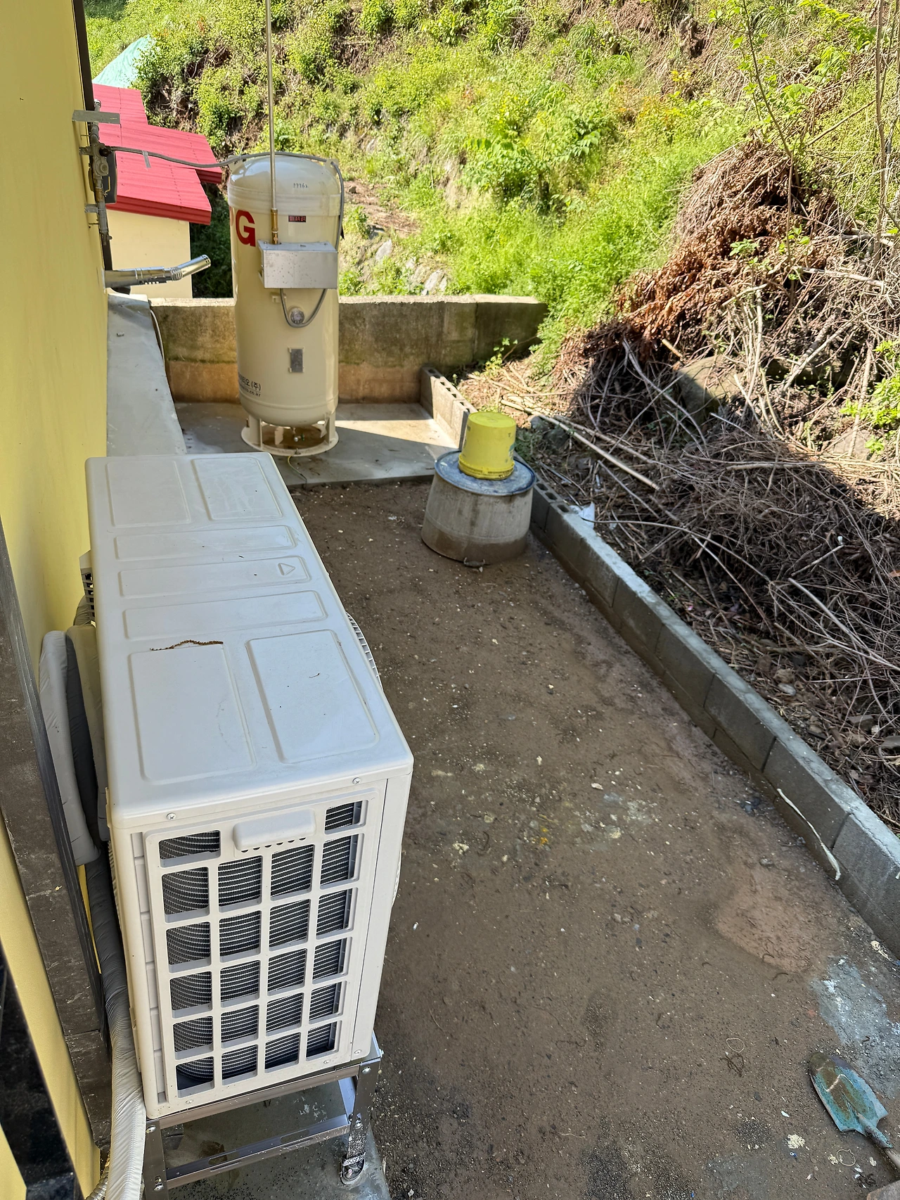 우리가 김밥을 우걱우걱 먹고 있는데 기사님이 7시 좀 넘어 문을 두드렸다(그러고 보니 여긴 인터폰이나 초인종도 없이 지냈다). 우리가 김밥을 좀 드시고 하시라 했으나 기사님은 인사를 마치자마자 김밥은 쳐다보지도 않고 에어컨 있는 데로 달려들었다. 마음이 급한 것이다. 비가 오기 전에 에어컨과 실외기를 현장으로 옮기기로 하고 바쁘게 움직였다. 나도 대충 설거지를 하고 아내와 함께 현장으로 출동했다. 비가 후드득 떨어지기 시작했다.