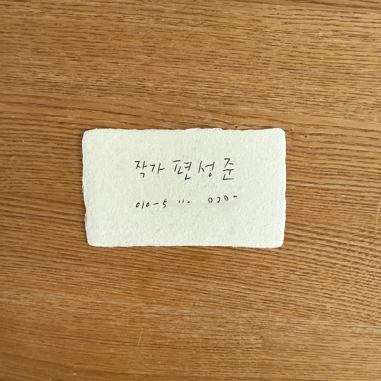 인쇄된 명함 대신 요즘은 종이 위에 볼펜으로 내 이름과 전화번호를 직접 쓴 명함을 사용한다. 아내가 출판사 난다의 행사장에서 발견하고 샀다는 한지 조각에 장난처럼 이름을 써서 명함으로 쓰기 시작했는데 100장이 다 떨어지자 아내가 인터넷 쇼핑몰을 뒤져 새 종이를 사줬다. 이건 한 장에 600원 짜리니 아껴 쓰라고 했지만 그래도 요즘은 만나는 사람마다 이 명함을 준다. 사이즈와 재질이 달라서 강렬한 인상을 주는 것 같다. 언젠가 이 명함도 나에게 다시 돌아오지 않을까 생각해 본다. 기왕이면 선의나 행운을 가지고 돌아오면 좋겠다는 엉뚱한 바람을 가져 본다.