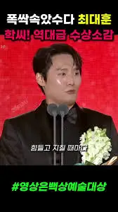 그는 그동안 정말 많은 드라마와 영화에서 '씬 스틸러' 역을 맡아 왔는데요, 만약 최대훈이 올해 남자조연상 후보에만 오르고 상을 못 받았다면 어땠을까요? 아, 올해는 정말 시청자들에게 인정과 사랑을 많이 받았고 "학씨!" 같은 대사는 유행어까지 되었는데, 그래도 안 되는 건 안 되는 거구나, 라고 실망했겠죠. 시청자들이나 일반 시민들도 "걔 정말 잘하던데, 이번엔 못 받았구나."라며 아쉬워했을 테고요. 그런데 예상했던 대로 그가 상을 받아서 너무 다행이었습니다. 이건 최대훈 개인의 영광만이 아니라 '객관적으로 잘하는 사람은 누구나 인정받을 있다'라는 믿음의 문제라 생각하기 때문입니다.