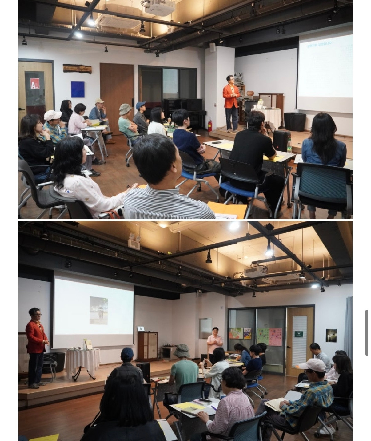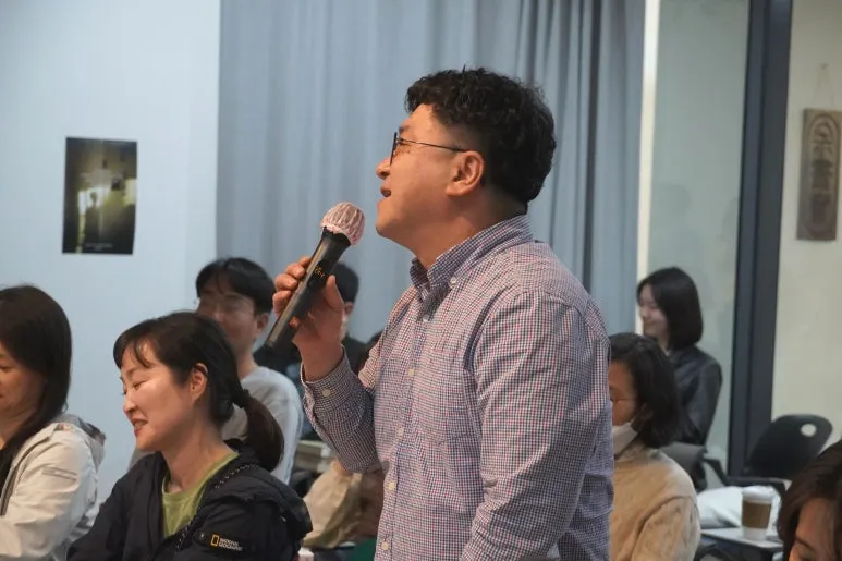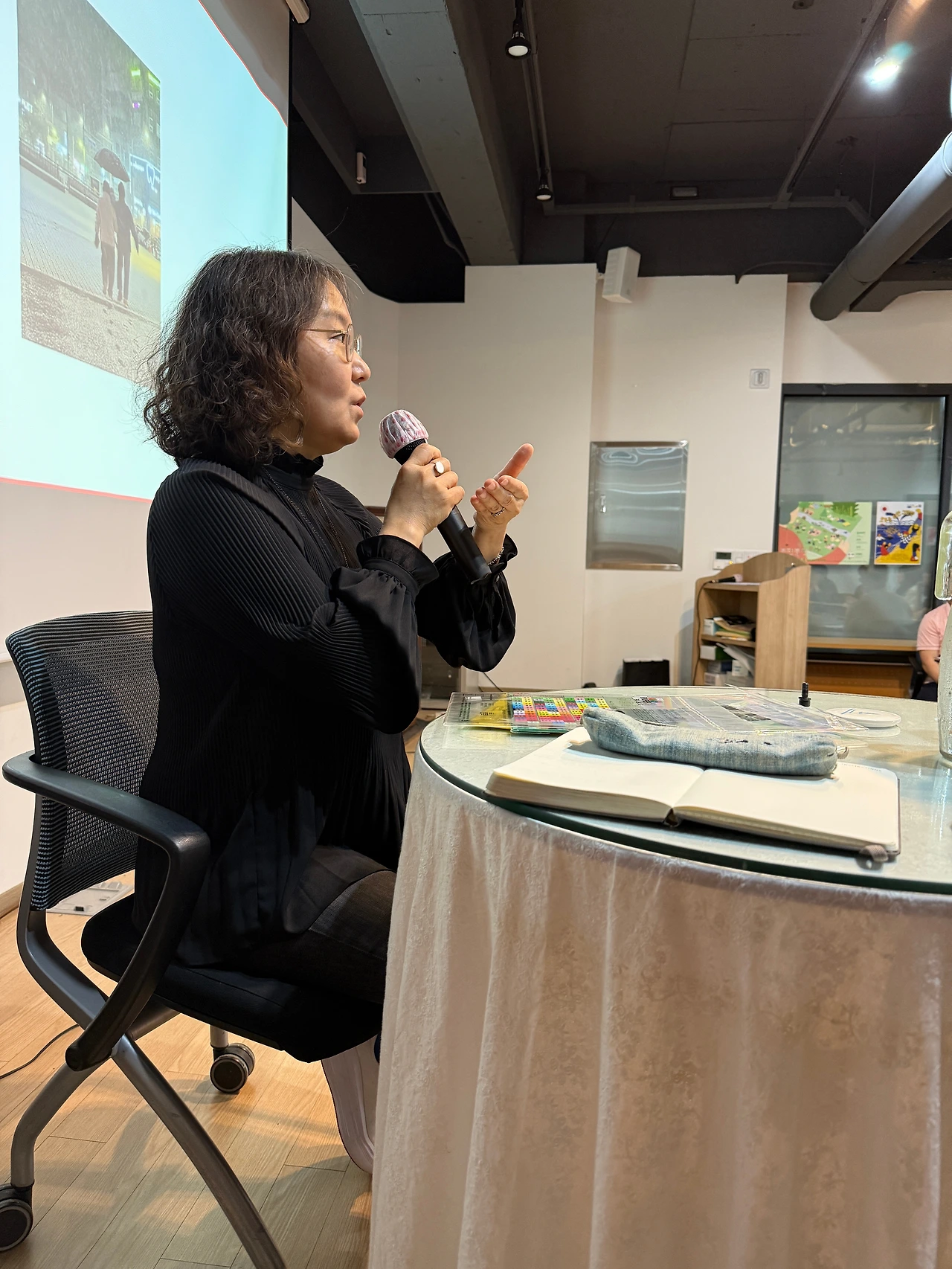제가 인용한 문장들은 책뿐 아니라 영화나 드라마 대사들도 많습니다. 드라마 《나의 아저씨》나 《폭싹 속았수다》에 나오는 명대사들을 소개하고 《건축학개론》에서 한가인이 했던 서글픈 대화도 소개했습니다. 영화 《아저씨》에서 한 형사가 구내식당에서 했던 대사 "이모, 반찬이 죄다 잡범이네. 아니, 어떻게 살인사건이 하나도 없나?"라는 대사를 듣고 다들 박장대소했을 때 숨어있는 이야기들을 발굴하는 노력이 보상을 받는 것 같아 기뻤습니다. 북토크 마지막엔 아내 윤혜자까지 무대 위로 올라와 이야기를 나누었습니다. 최근에 읽은 책 중 인상 깊은 작품을 묻는 질문에 저는 에드워드 리의 『버터밀크 그래피티』에 대해 얘기했고 윤혜자는 일 년 넘게 읽고 있는 난다의 '시의적절' 시리즈를 권했습니다. 행사가 끝나고 저녁 뒤풀이 때 이변진 팀장은 이렇게 늘 새로운 독서 목록을 업그레이드하고 그걸 얘기할 수 있는 게 저의 장점인 것 같다고 말했습니다. 늘 읽고 쓰는 사람으로서는 영광스러운 칭찬이었죠(어제 아침에도 보령에서 아내와 비슷한 얘기를 나누었습니다. 아내는 '당신의 장점은 글 쓰는 걸 싫어하지 않는다는 것'이라 말했고 저는 고개를 끄덕였습니다).