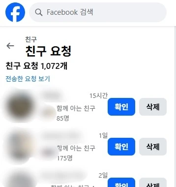 오늘 새벽 페이스북 친구 요청 명단을 보았습니다