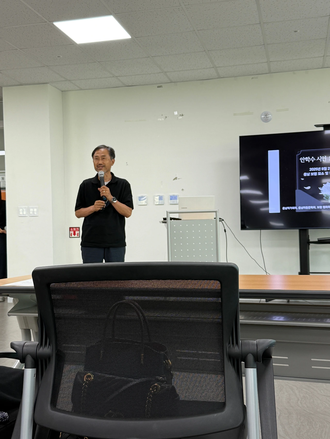 박상분 시인, 박경희 시인, 소중애 작가 등이 나와 시를 낭독하고 고인과의 추억을 얘기했습니다. 저는 사람이 죽으면 그걸로 끝이라고 생각하는 냉철한 사람입니다. 그런데 그제 들은 안학수 시인과 얽힌 수많은 이야기들은 '레이어'가 되어 새로운 세상을 만들어 내고 있더군요. 그 분들 얘기의 공통점은 안학수 시인이 항상 웃고 있었다는 것입니다. 웃지 않는 사진이 한 장도 없더랍니다. 제가 모르고 있던 사람들, 세상과의 만남이었습니다. 시인은 돌아가셨지만 그가 남긴 이야기들은 남은 이들의 가슴에 살아 있었습니다. 나중에 박남준 시인이 나와 '모악산장'에 얽힌 이야기를 이정록, 이강산 시인과 함께 했고 김정헌 충남아동문학회 사무국장님이 나와 들려준 얘기는 어찌나 웃기던지 다들 배꼽을 잡고 웃어야 했습니다.